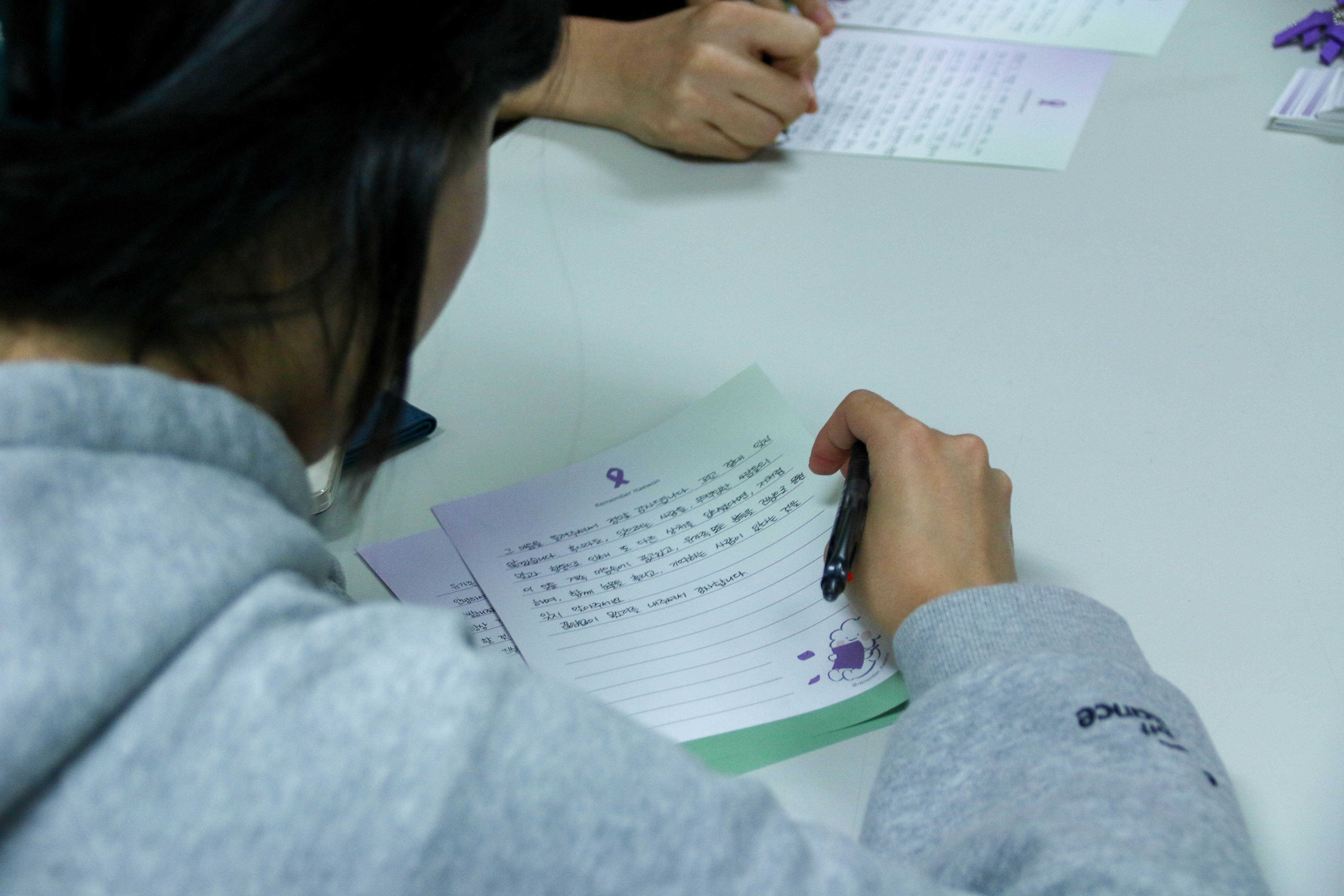 참여자들은 편지지에 한 자 한 자 마음을 담아 편지를 쓰고 보라색 우체통에 편지를 모았습니다. 이태원 참사에 슬퍼하는 마음, 기억하겠다는 다짐이 보라 우체통에 담기고 있습니다. 더 많은 연대를 유가족분들께 전달할 수 있도록, 편지쓰기에 많이 동참해주세요!