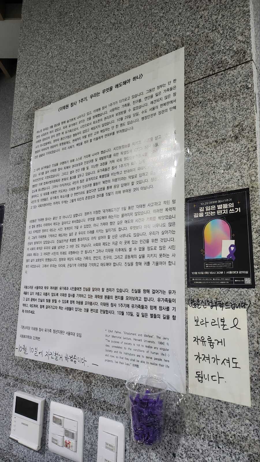 10·29 이태원 참사 1주기 길 잃은 별들의 길을 잇는 편지 쓰기, 대학별 편지쓰기의 두 번째 순서는 서울여자대학교였습니다…