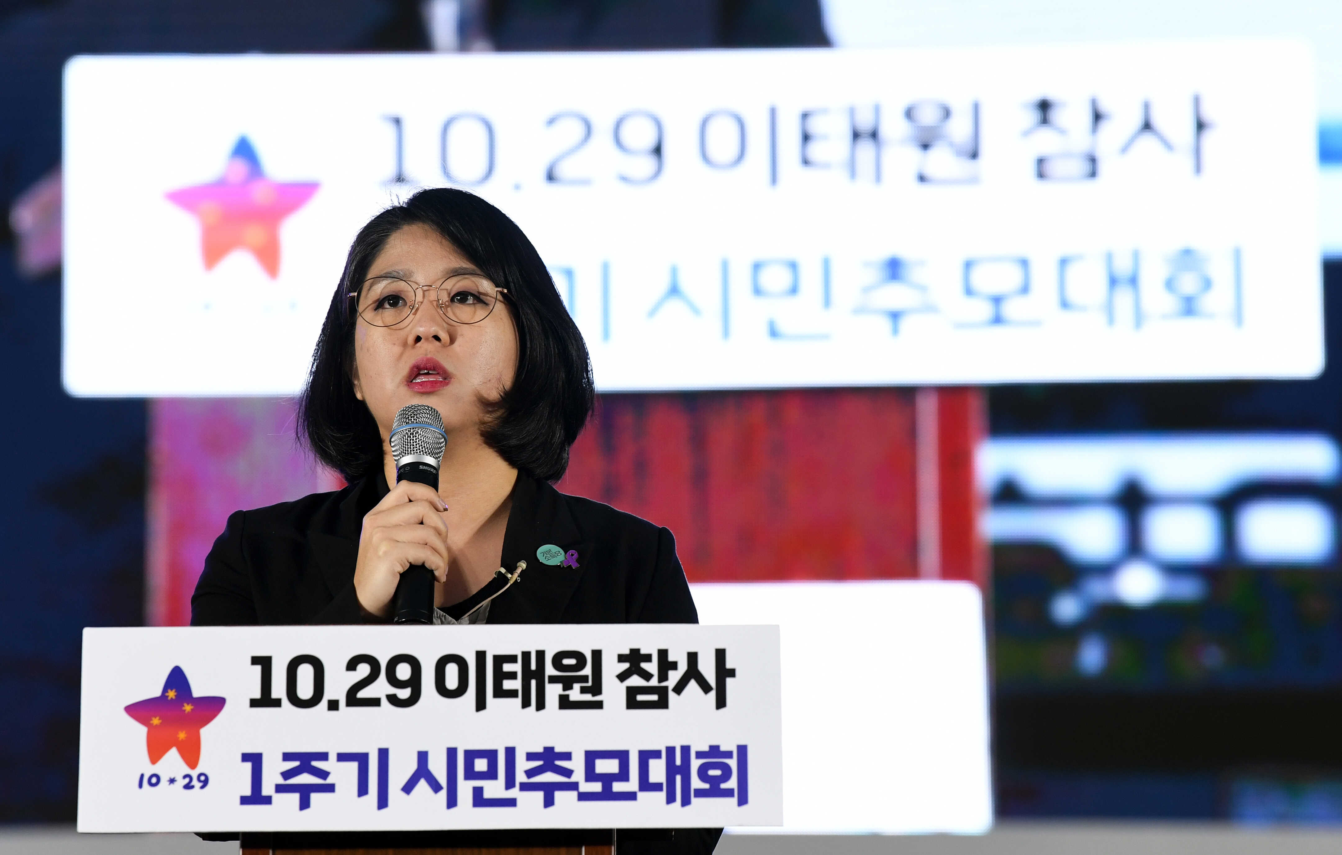 1년 전 오늘 이 순간, 별처럼 빛나고 있었던, 이제는 별이 되어버린 159명, 한 분 한 분의 영면을 진심으로 바랍니다. 또한 이 자리에 함께 해준 세월호 희생자 유가족 분들, 오송참사 희생자 유가족 분들께도 깊은 연대와 위로의 말을 전합니다. 마지막으로 아직, 무엇 하나 바꾸어내지 못해, 너무나 송구하고, 또 죄송하다는 사죄의 말씀을 드립니다."