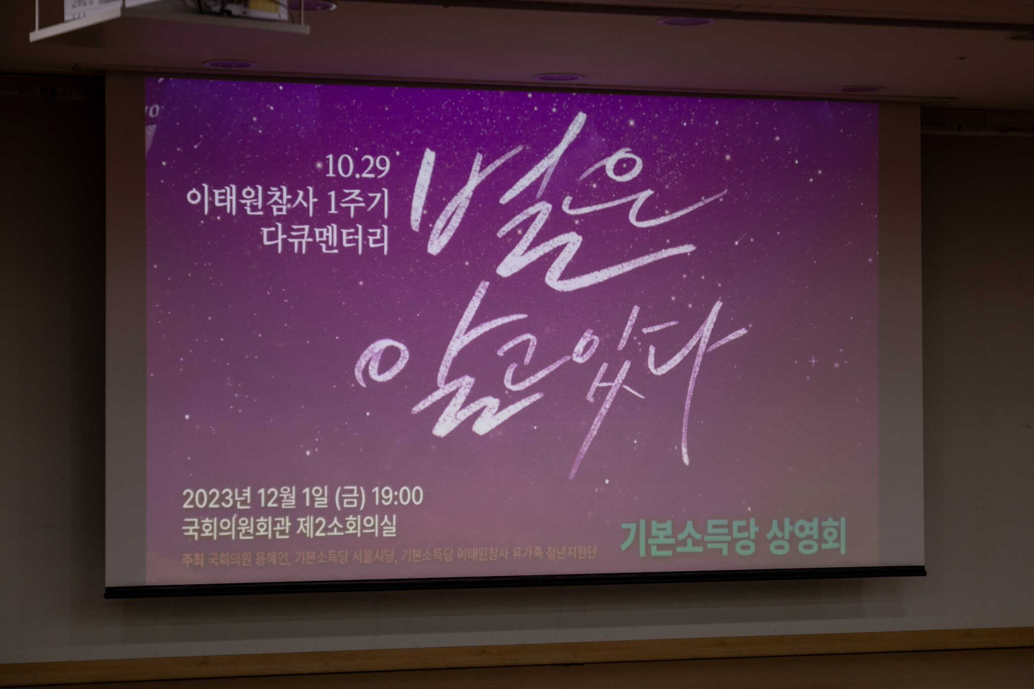 10.29 이태원참사 1주기 다큐멘터리 <별은 알고있다> 기본소득당 상영회가 국회에서 열렸습니다