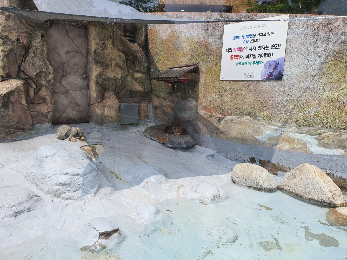 또 어디서 어떤 과정을 통해 이들이 오게 되었을지, 비좁은 상자에 갇혀 태평양 대서양을 거쳐 이곳에 오게 되었을지, 자체 번식으로 태어났을지… 어느쪽이라도 너무 비극적이라 생각하는 것이 힘들었습니다. 그리고 아마도? 어린이대공원이 우리나라에서 가장 나은 환경의 동물원일것이라는 생각에 더 마음이 아팠습니다. 코로나 방역을 위해 야생동물과의 거리를 두라는 안내를 보면서도 이들을 여기까지 데려온 것 자체가 위험한일 아닐까요? 우리의 사회적 거리두기는 과연 무슨 의미가 있는지 생각도 많이 들었습니다.