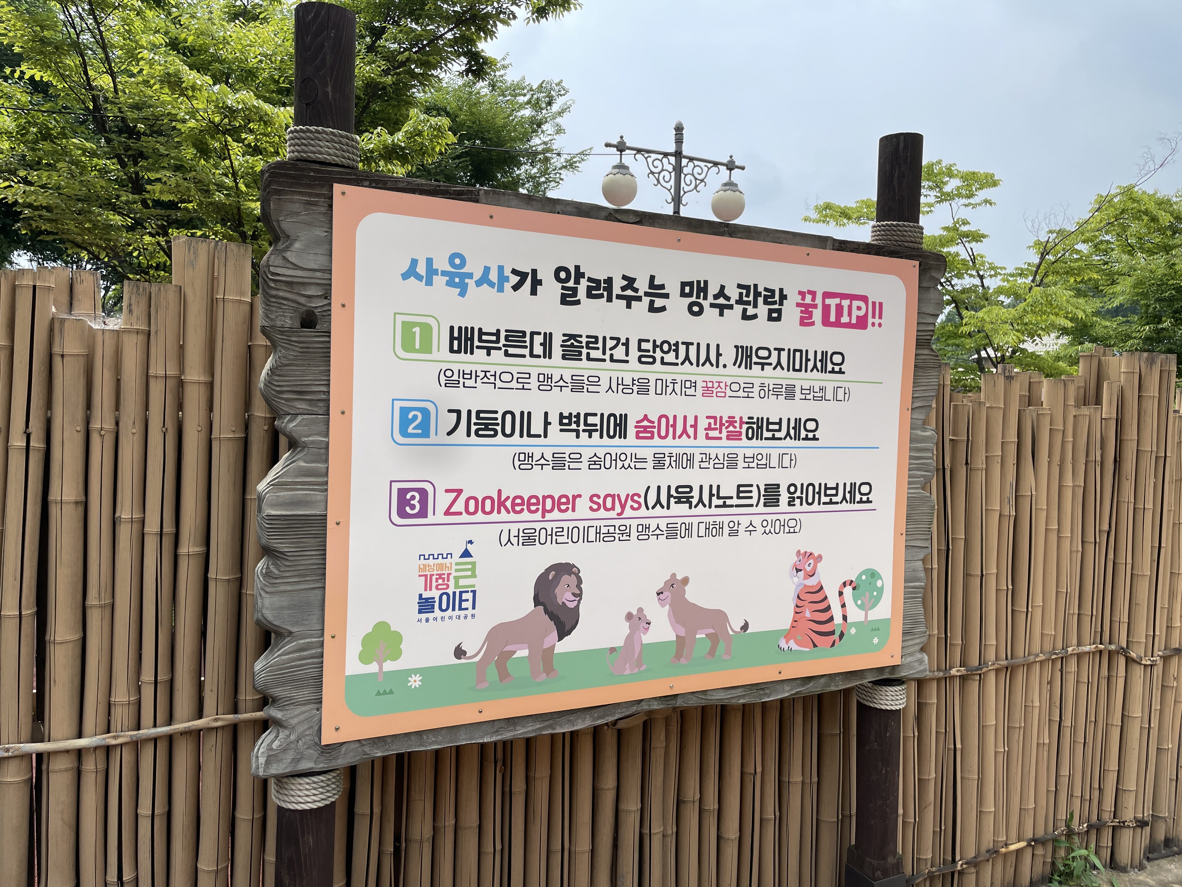 어린이대공원에 있는 동물들이 살고 있는 곳은 자의로 집이된 것은 아니지만 집이 되어버렸잖아요. 그런데 인간들은 그 집을 더 가까이에서 볼 수 있도록 구조물을 만들고 펜스를 쳐요. 그리고선 손을 넣으면 위험하기 때문에, 우리가 다칠 수 있기 때문에 다가가면 안된다고 경고문을 작성해두었더라구요.