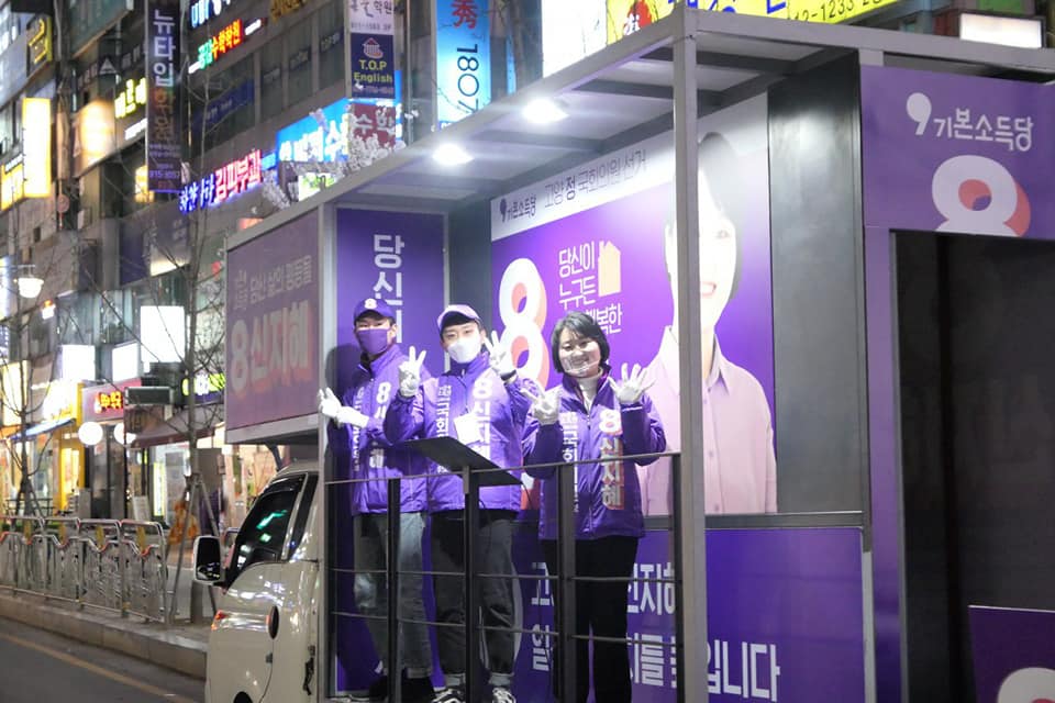 기본소득당 기호8번 신지혜는 여러분 덕분에 오늘도 한 뼘 더 커지고 있습니다. 지친 기색 없이 오늘도 유세점검을 하고 있는 선본원, 먼 길을 오로지 신지혜만 바라보고 오신 분들 덕분에라도 꼭 당선으로 보답하고 싶습니다.