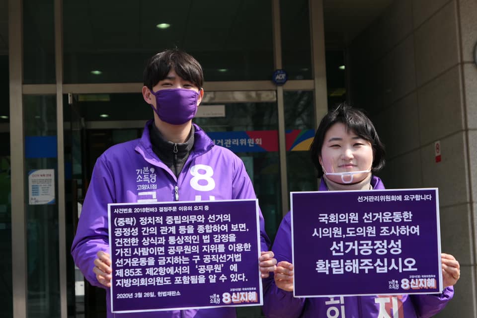 "지방의회의원은 일반적으로 공직선거법상 '공무원'에 포함되지 않지만, 공무원의 지위를 이용한 선거운동이 금지되는 대상에서 지방의회의원이 제외된다고 해석할 수 없다“저는 헌법재판소 결정주문 이유의 요지를 근거로 국회의원선거운동에 열일 하고 있는 고양시의원 및 경기도의원에 대한 조사를 요청했습니다. 일산서구선거관리위원회의 답변은 선거가 임박한 시기에 내려진 결정이었고, 중앙선거관리위원회로부터 관련 지침은 없었으며, 이미 고양시의원 및 경기도의원도 선거사무원으로 등록할 수 있다고 사무안내 책자로 알려주었기 때문에 조사할 권한이 없다고 답변했습니다.