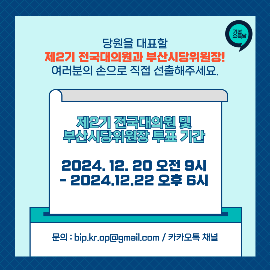 🗳️ 기본소득당 제2기 전국대의원 및 부산시당위원장 선출 선거 안내