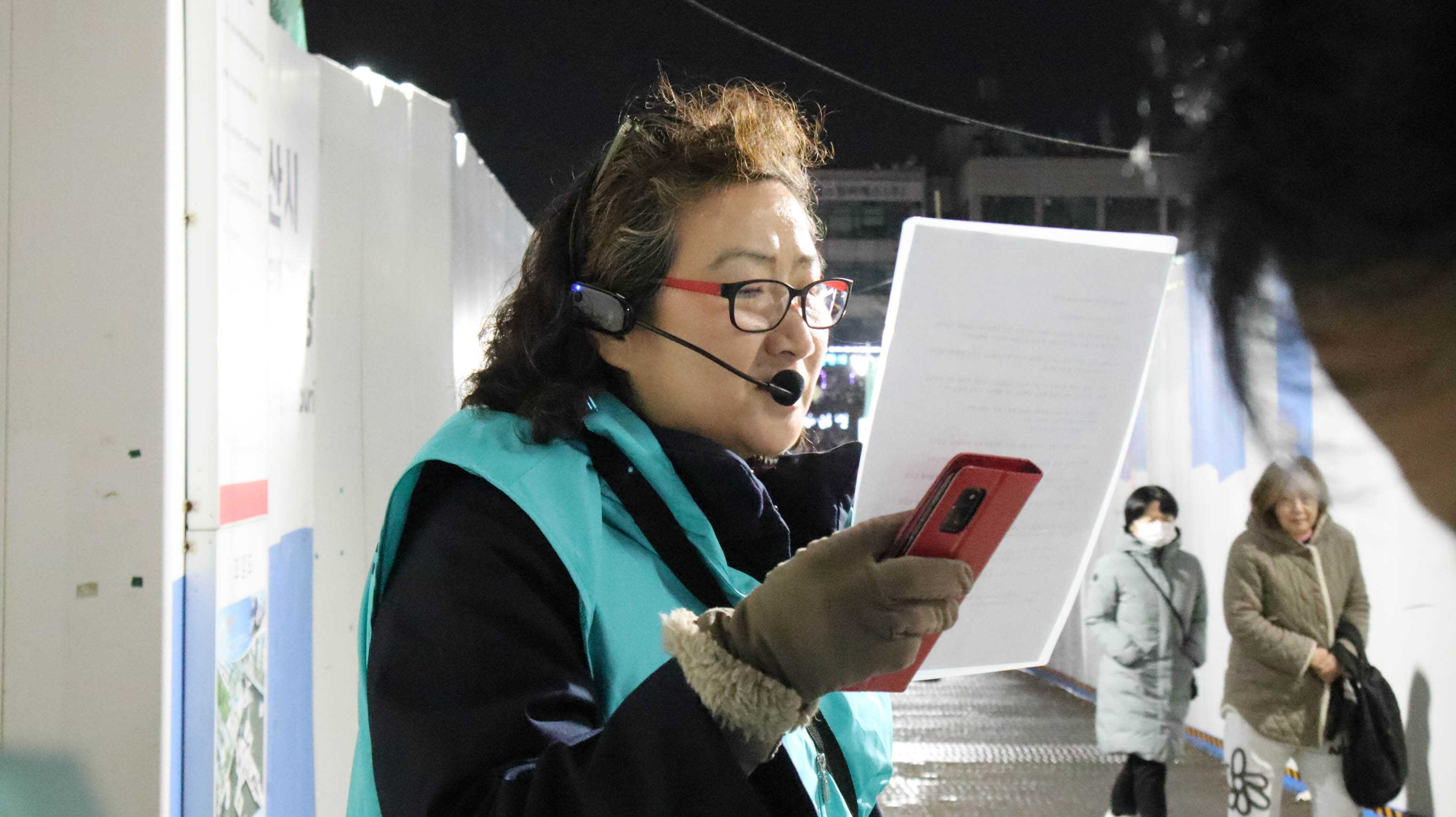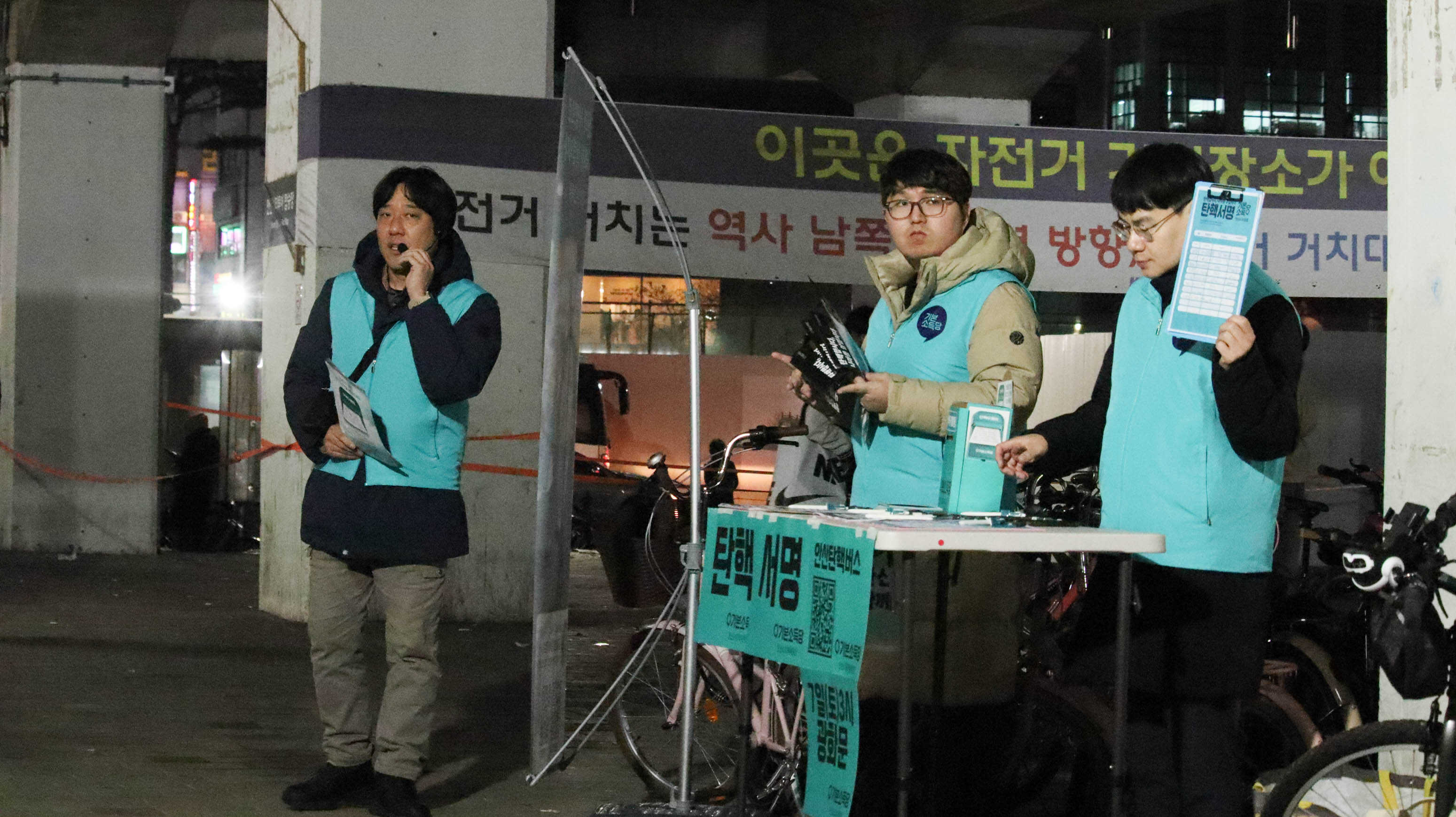 캠페인 부스를 차리기위해 자리를 물색하며 짐을 들고 돌아다니고 있는데 과일 좌판을 펼쳐놓으신 분이 다가오더니 “뭐하는거야?”라고 큰 소리로 물으셨습니다. 큰 소리에 위축되서 탄핵캠페인을 하려고 한다고 했더니 “여기 말고 저기서해!” 라고 큰소리를 치시며 끌고 가셨습니다. 너무 당황했는데, 추우니까 히터 켜 줄테니까 여서기하라고 말씀하시면서 조명도 켜주시고 중간쯤에서 유인물을 나눠주야 한다 알려주셨습니다. 그러더니 “나 용혜인 팬이야!” 라고 또 소리치시고는 본인 좌판으로 돌아가셨습니다. 원래 본인의 과일보관창고로 쓰는 곳인데 조명도 설치되어 있어서 잘보일꺼라고 꼭 탄핵시켜야 한다며 우리에게 따뜻한 자리를 내주셨습니다.