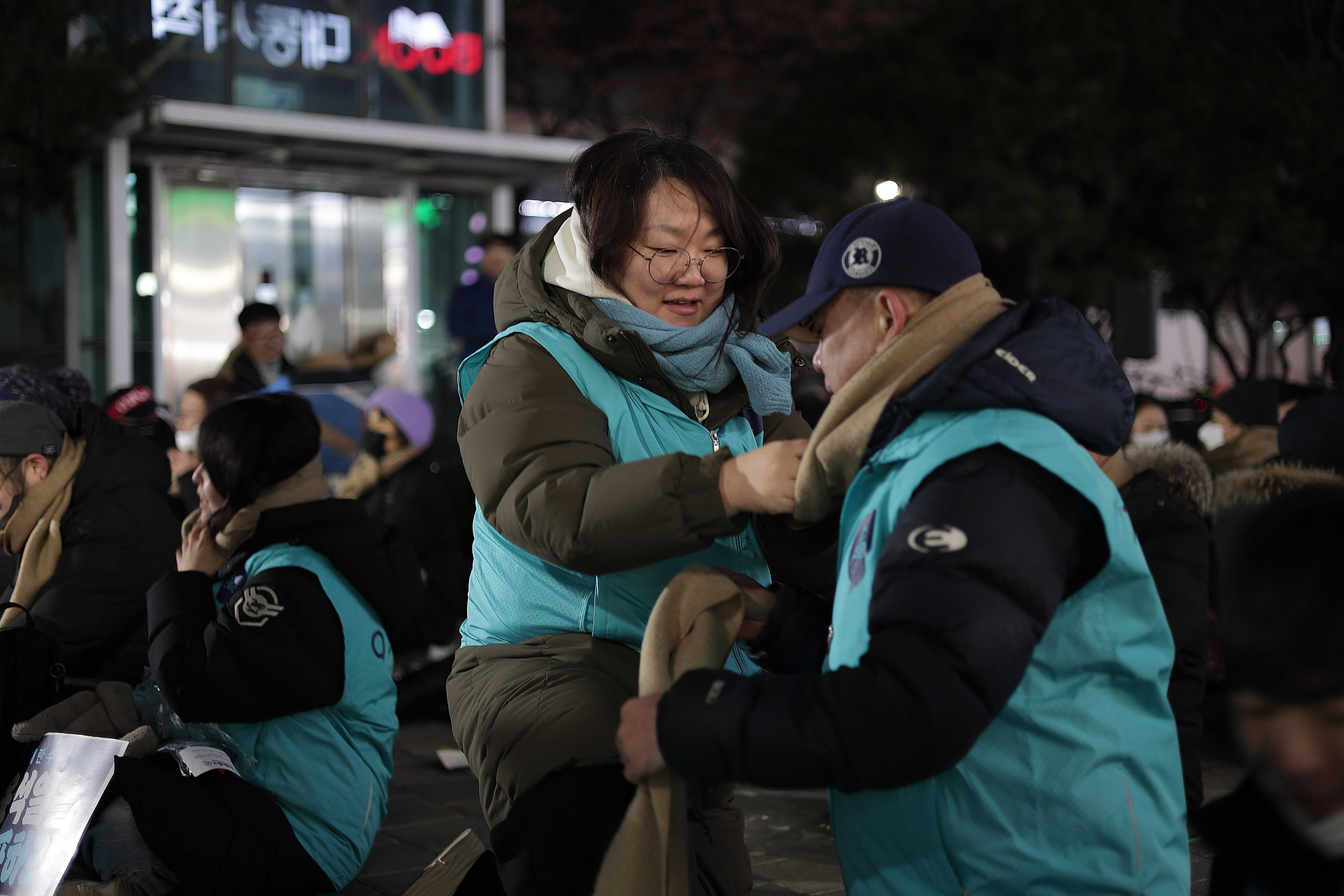 뚜벅이재단에서 집회 참여자들에게 목소리를 전해주셨는데요. 참가자들과 서로 목도리를 함께 둘러주는 시간도 가졌습니다.
