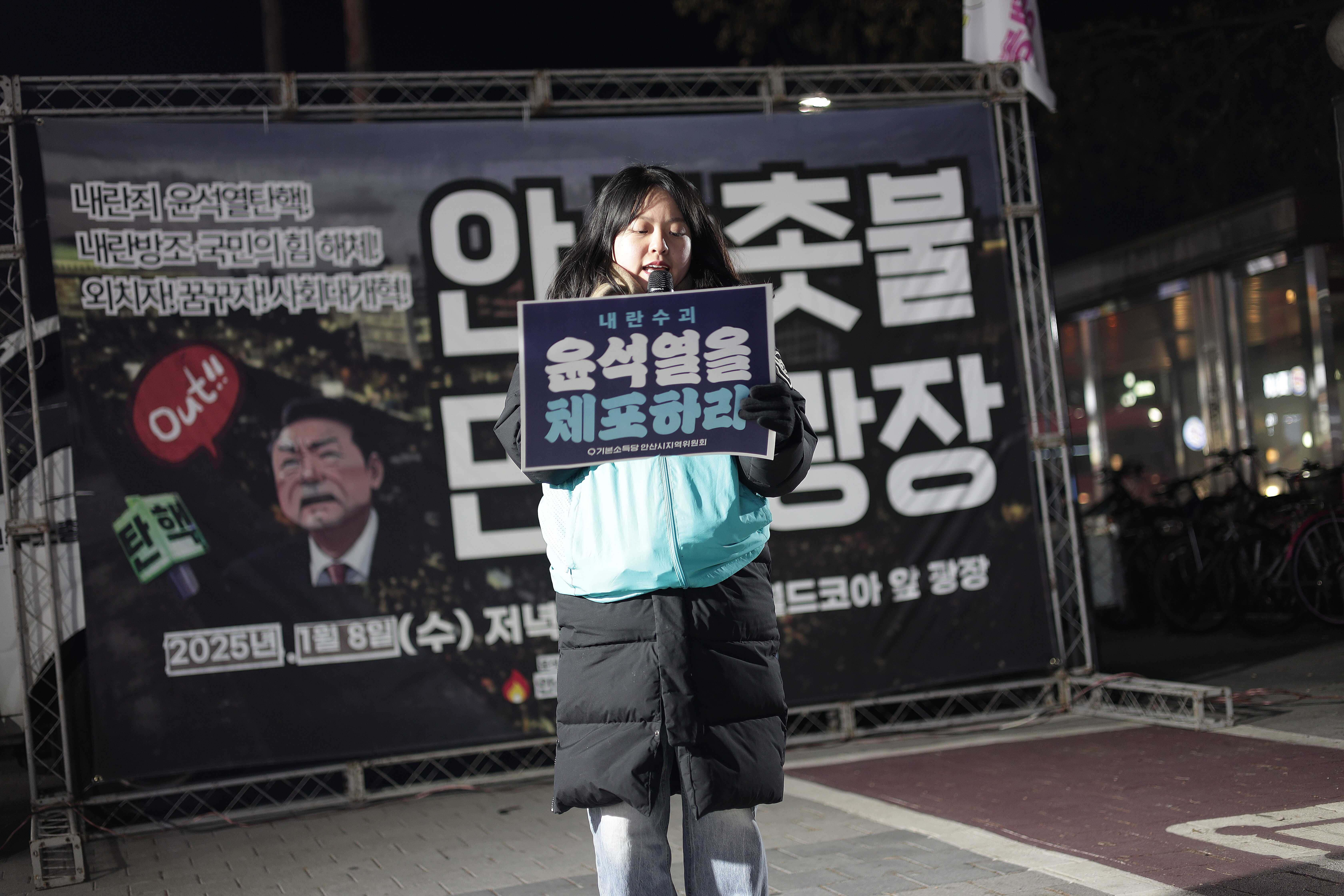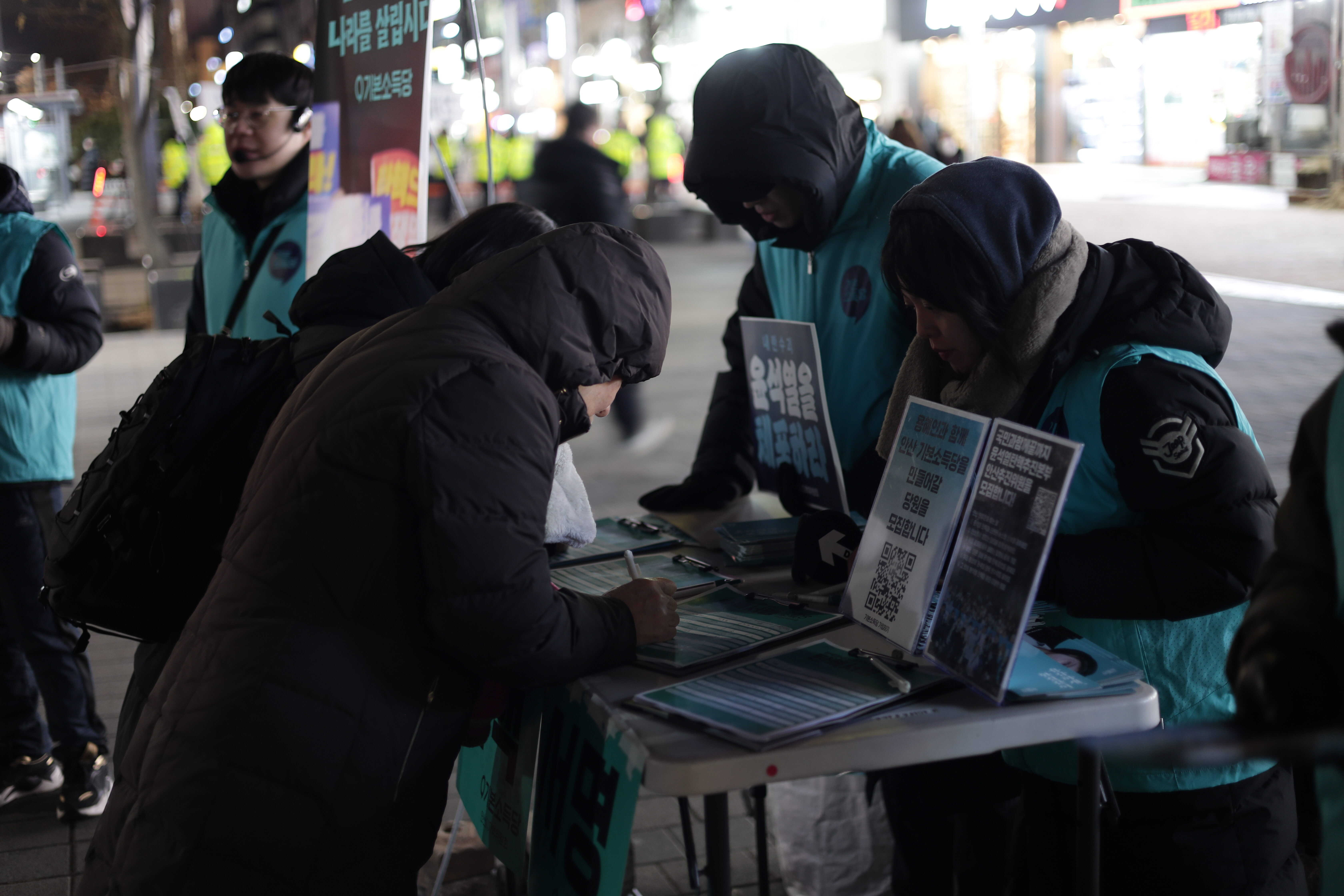 집회가 시작되기 전 윤석열 체포와 파면을 촉구하는 서명 운동을 진행했는데요. 살을 에는 추위에도 많은 시민들이 서명에 동참해주셨습니다.