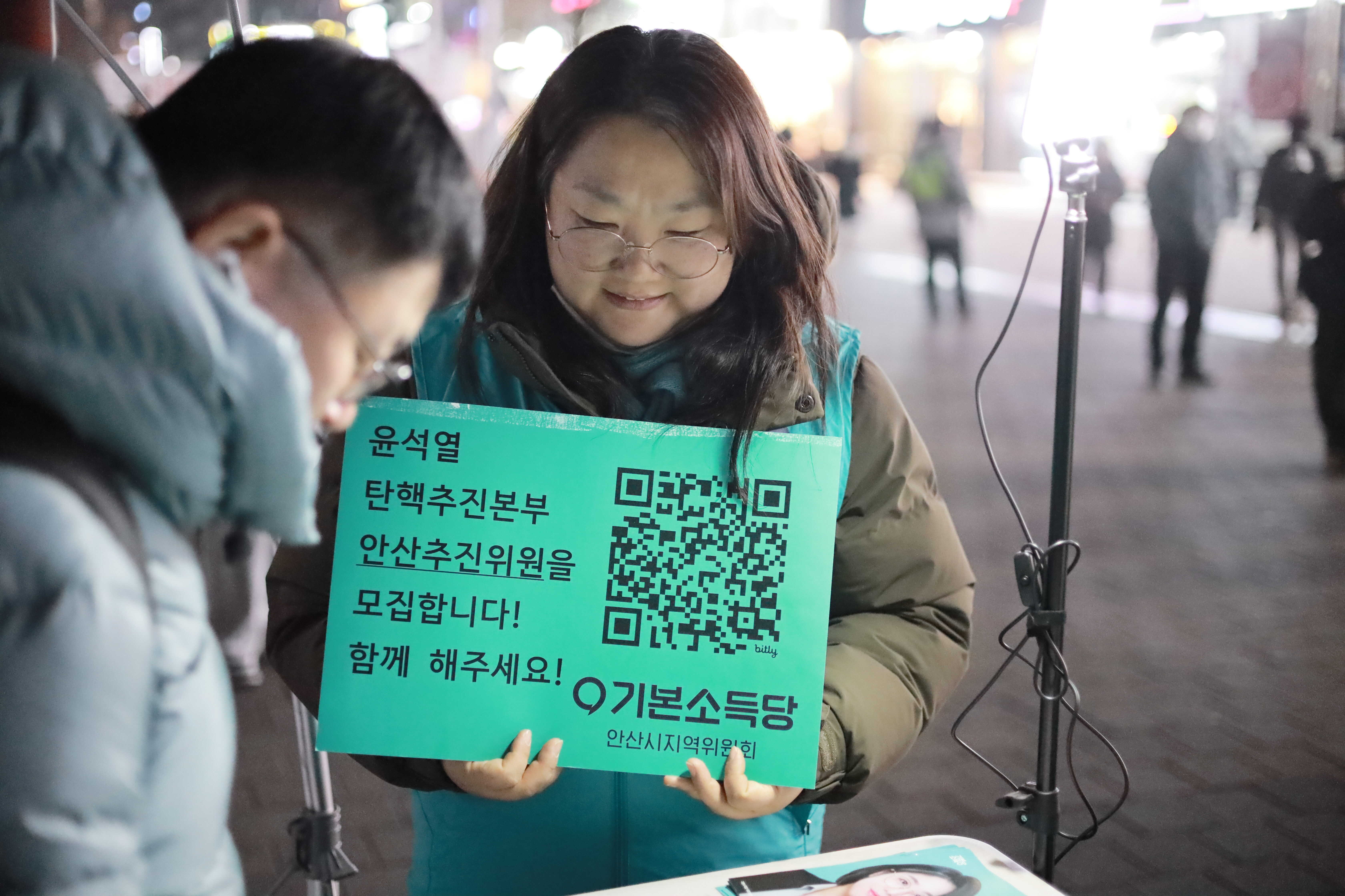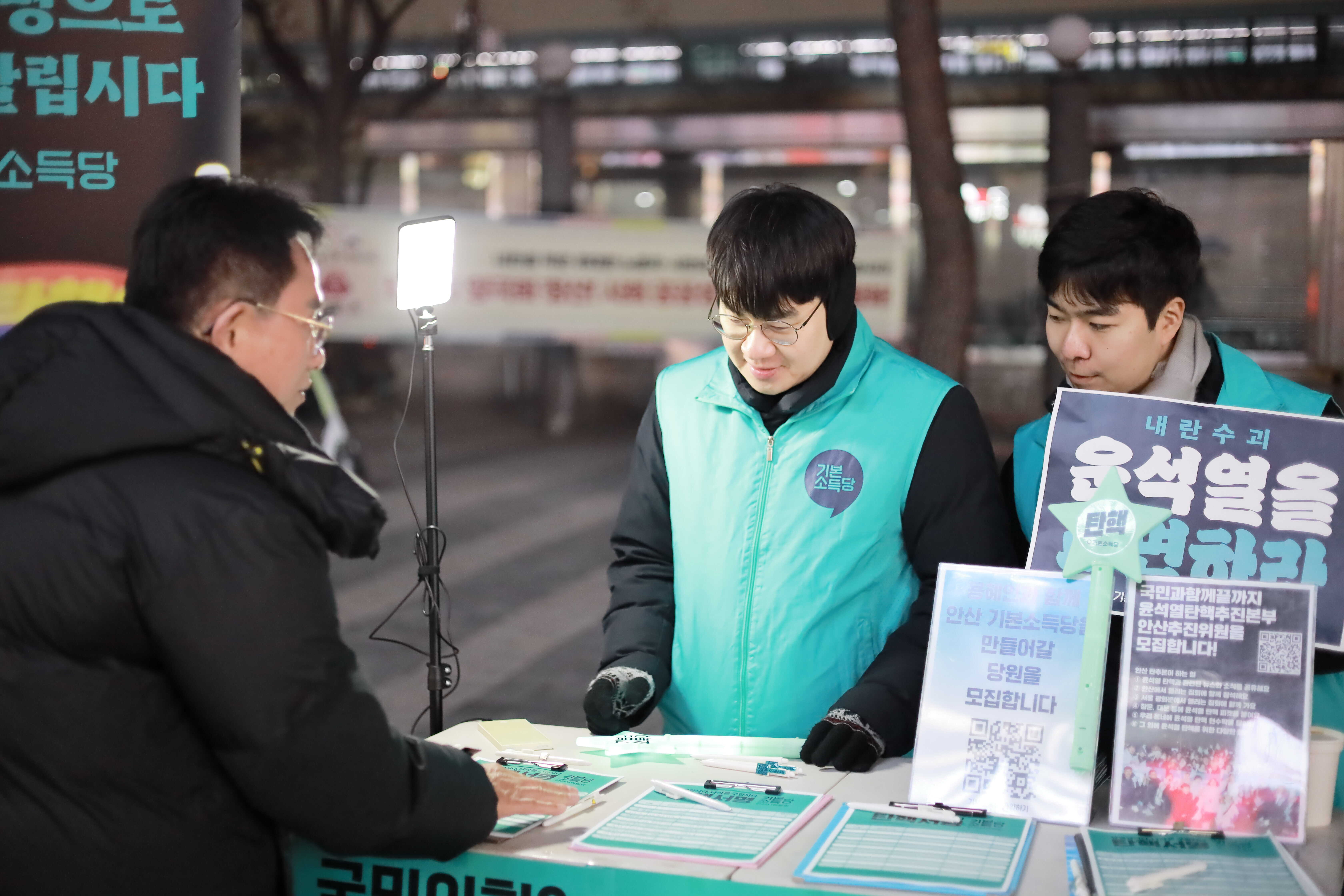 1월 22일 수요일, 안산 중앙동 동서코아 앞 광장에서 진행된 <안산 촛불 민주 광장>에 함께 했습니다! 기본소득당 안산시위원회는 이 날 집회 전에 <윤석열 즉각 파면 촉구 서명>을 받았어요. 시민들의 힘으로 윤석열 탄핵안을 가결시키고, 윤석열을 체포·구속했던 것처럼 빠른 시일 내에 파면까지 이를 수 있도록 목소리를 함께 내주실 것을 요청드렸습니다. 많은 시민분들께서 이에 서명으로 화답해주셨습니다.