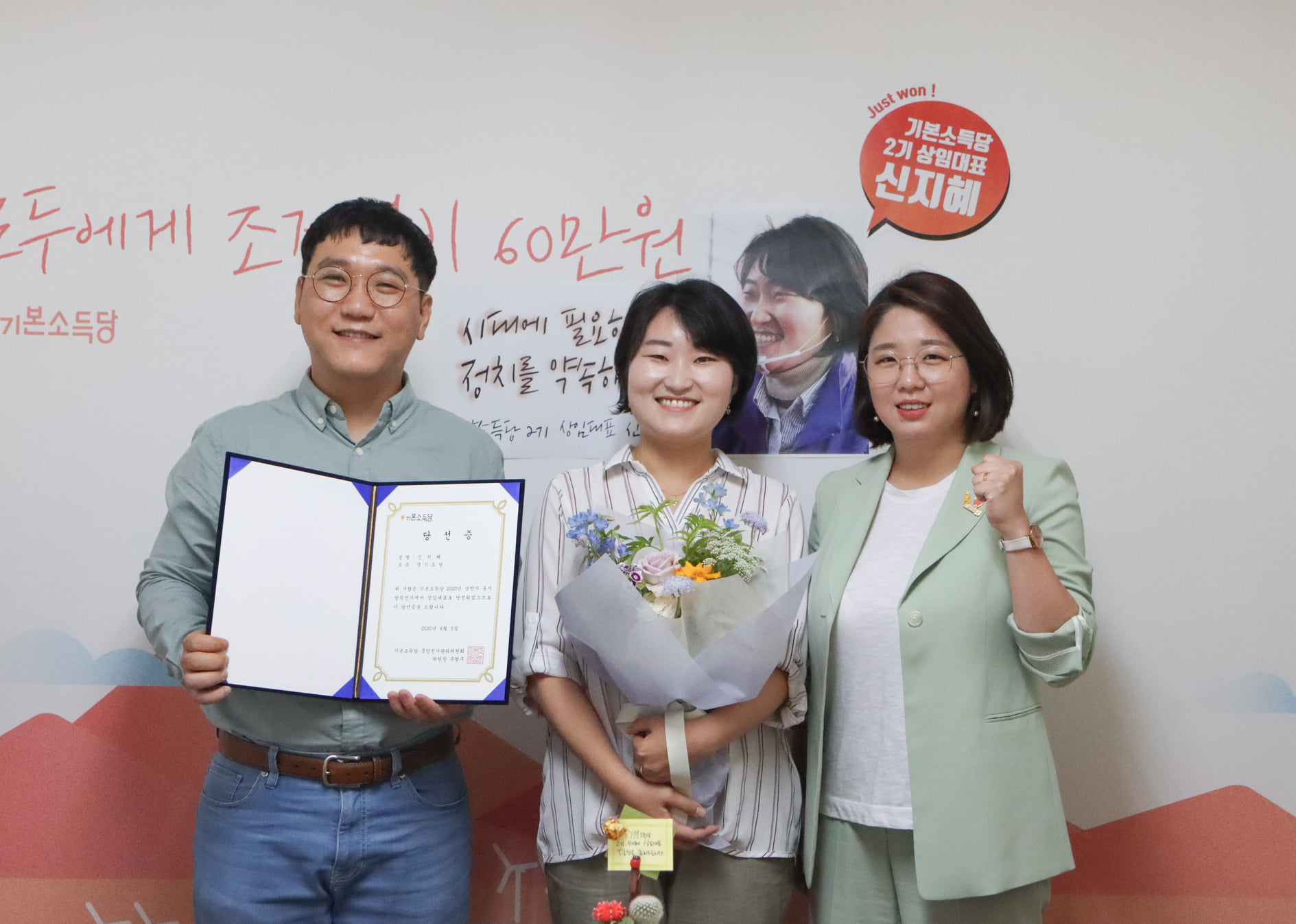 기본소득당 창당에서 총선을 치르기까지 드러나지 않는 곳에서 물심양면 함께 해주신 당원분들 덕분에 원내정당으로서 기본소득당의 2기를 시작할 수 있었습니다. 특히, 이 시간 속에서 대표 권한대행으로서도 당을 잘 이끌어준 박기홍 사무총장에게 감사한 마음을 전합니다. 소중하고 감사한 여러분들의 새로운 정치를 향한 뜨거운 열망을 담아 안을 수 있는 대표가 될 수 있도록 매순간 최선을 다하겠습니다.