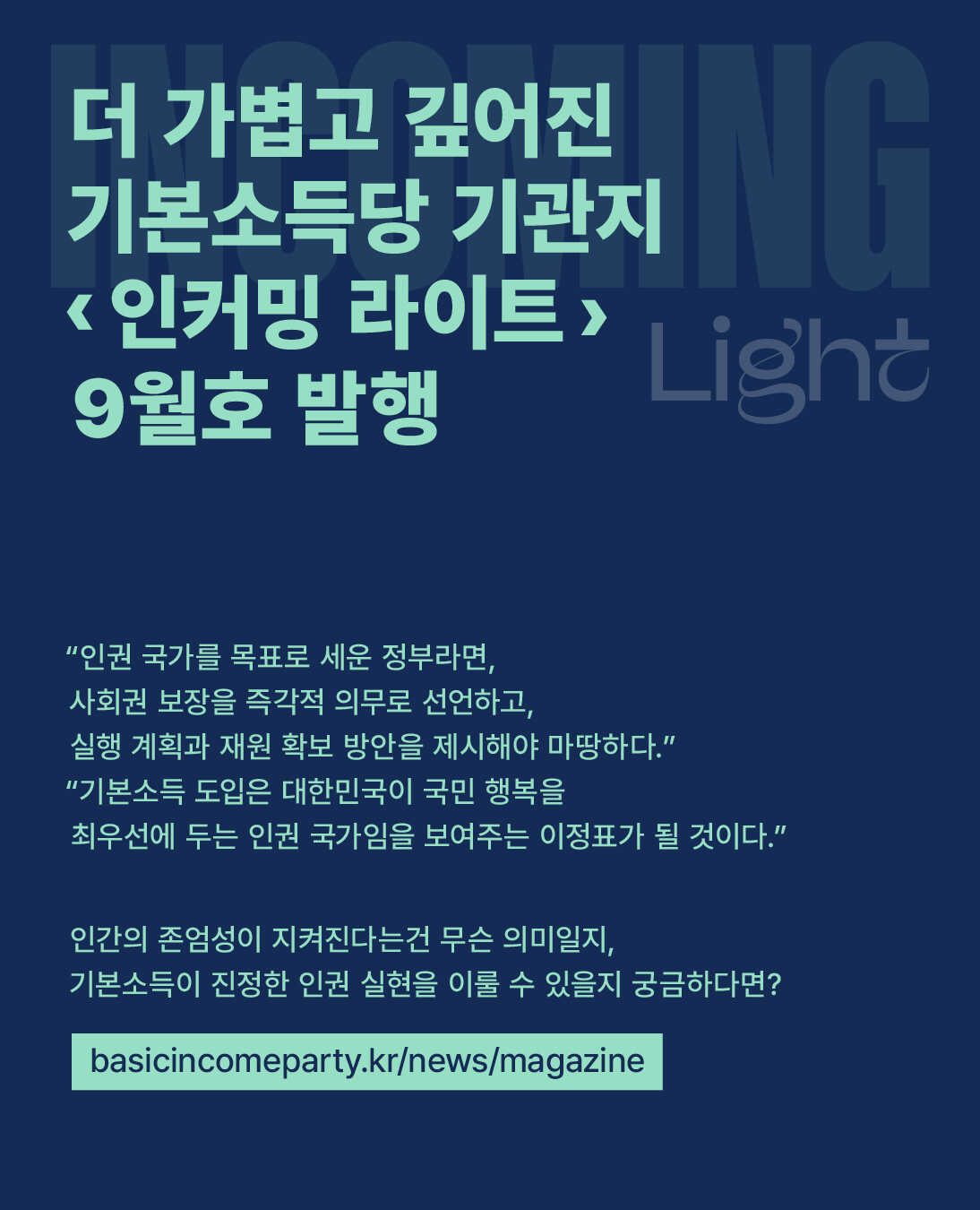 더 가볍고 깊어진 기본소득당 기관지 <인커밍 라이트> 9월호
