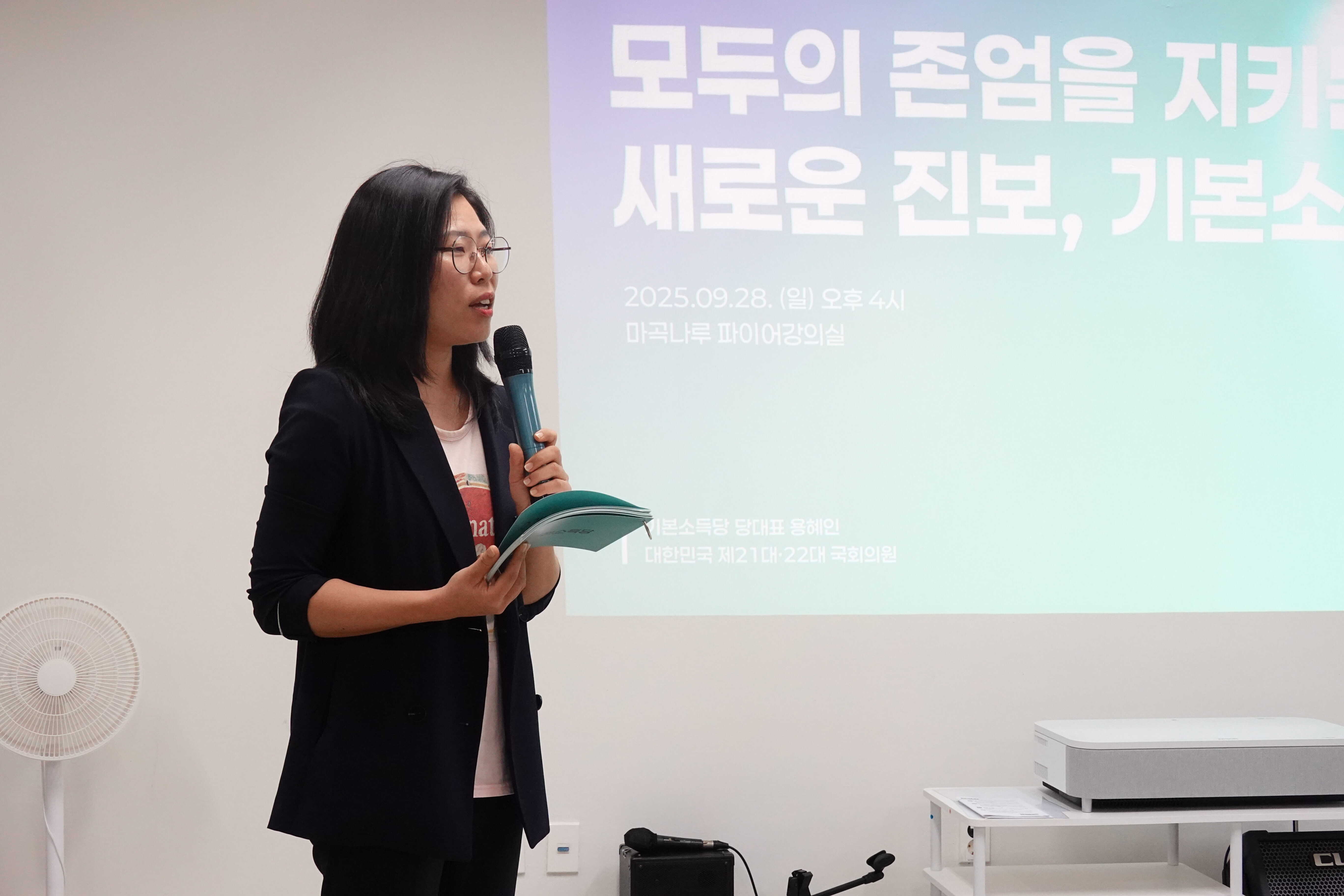 9월 28일 오후 4시 마곡에서 기본소득당 강서구·양천구지역위원회의 첫 지역 행사로 용혜인 대표와 함께하는 기본소득 토크콘서트가 열렸습니다. 이혜정 지역위원장님의 힘찬 진행에 더해, 전국환경노동조합 양천지부와 형제복지원 피해자협의회에서 특별히 축사를 전해주셨습니다.