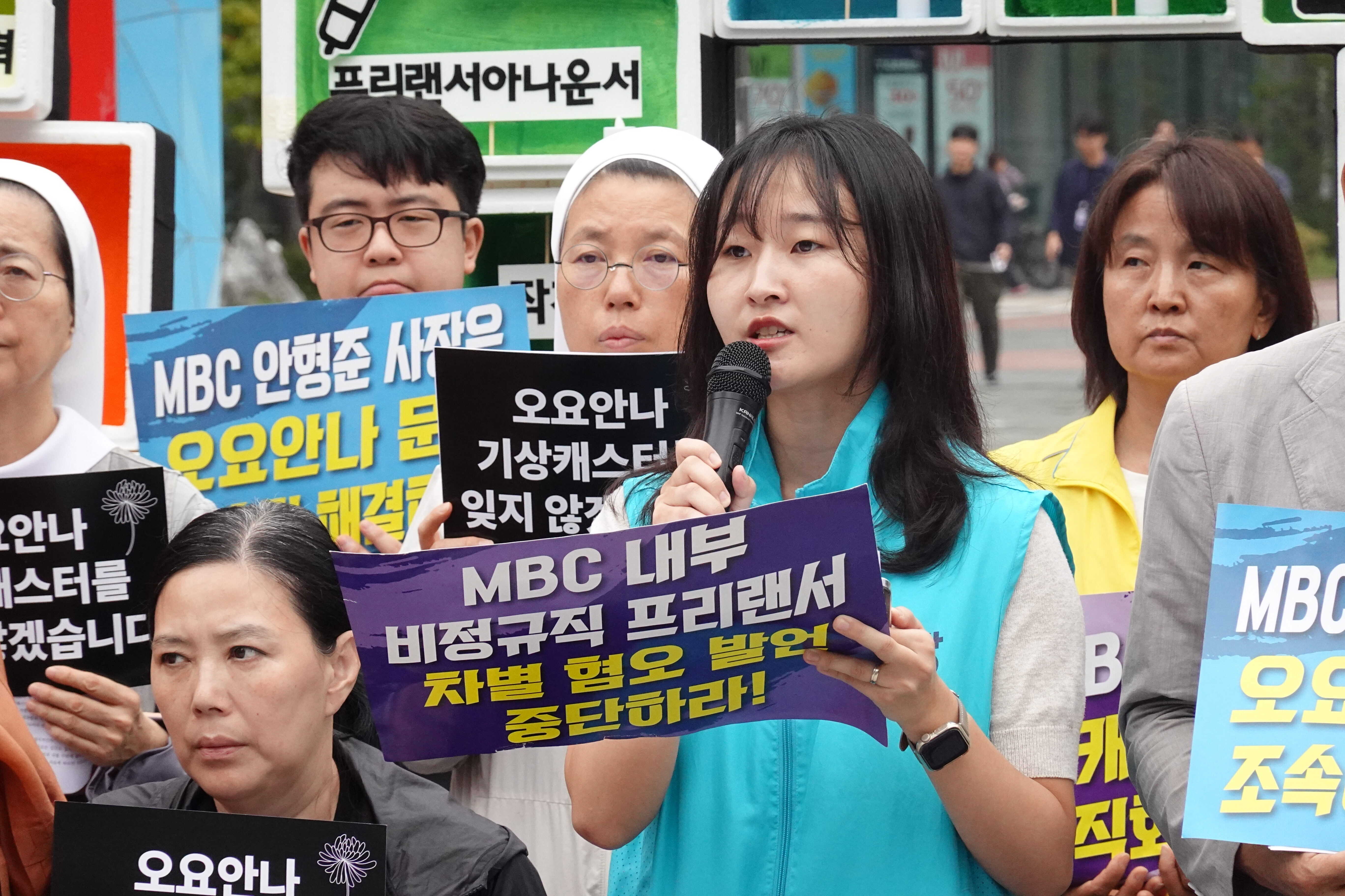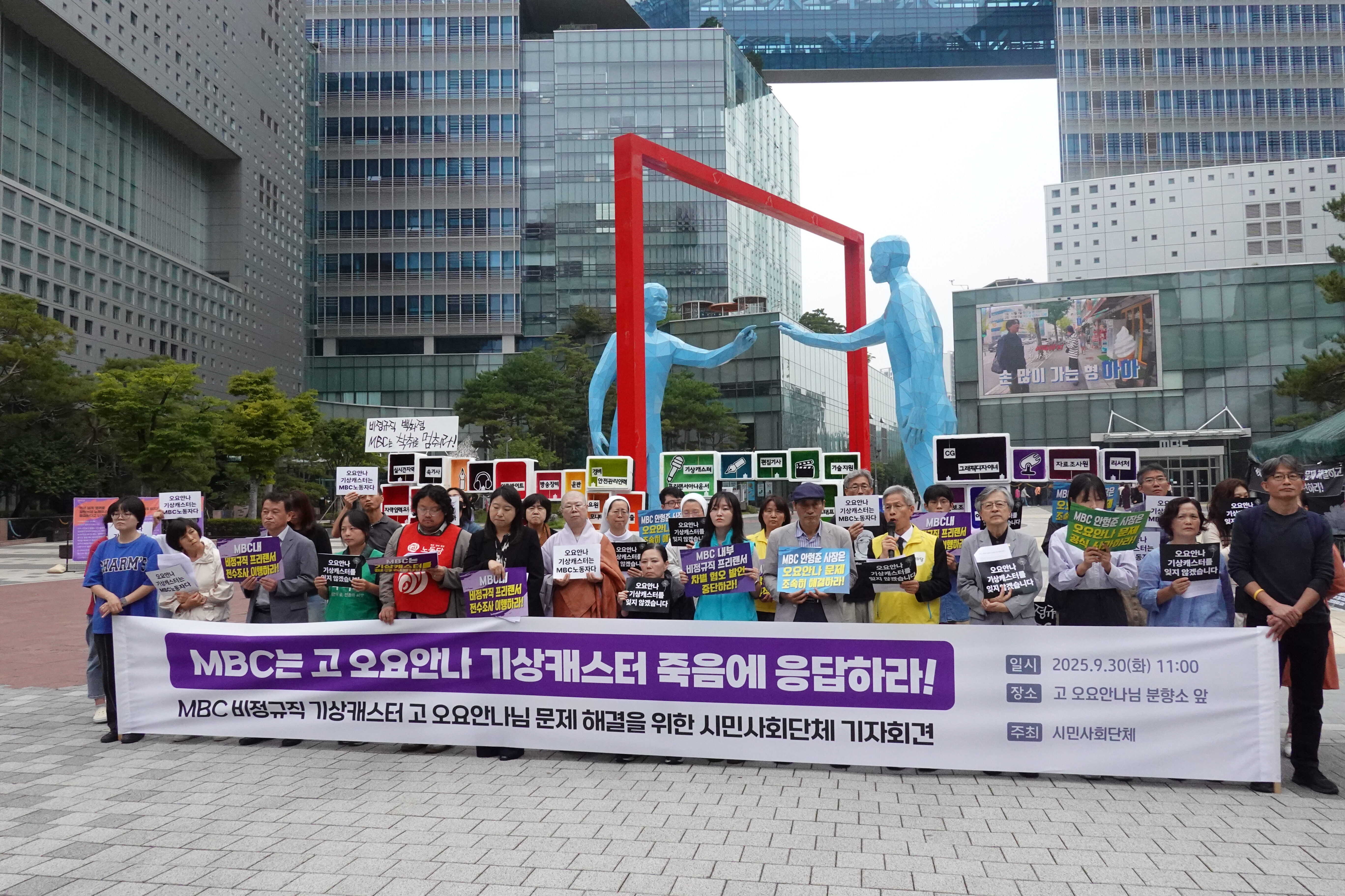 9월 30일은 MBC 기상캐스터 故 오요안나 님의 어머님께서 단식농성을 시작하신 지 23일째 되는 날입니다. 유족은 고인이 비정규직 프리랜서로 겪었던 구조적 괴롭힘이 더는 일어나지 않도록, MBC 기상캐스터를 정규직으로 전환할 것을 요구해오셨습니다. 그러나 우리는 1주기가 지났지만 여전히 책임 인정도, 제도 개선도 없이 제자리걸음 중인 현실 앞에 서 있습니다.