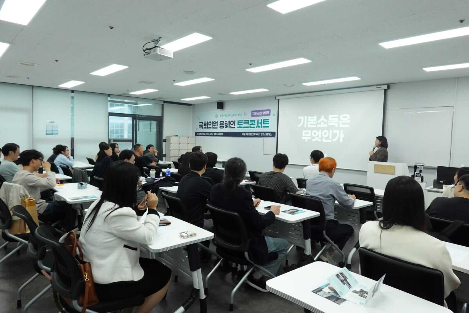 10월 18일 토요일 오후, 가산디지털단지에서 기본소득당 구로·금천·영등포지역위원회가 주관한 국회의원 용혜인 토크콘서트가 성황리에 열렸습니다.