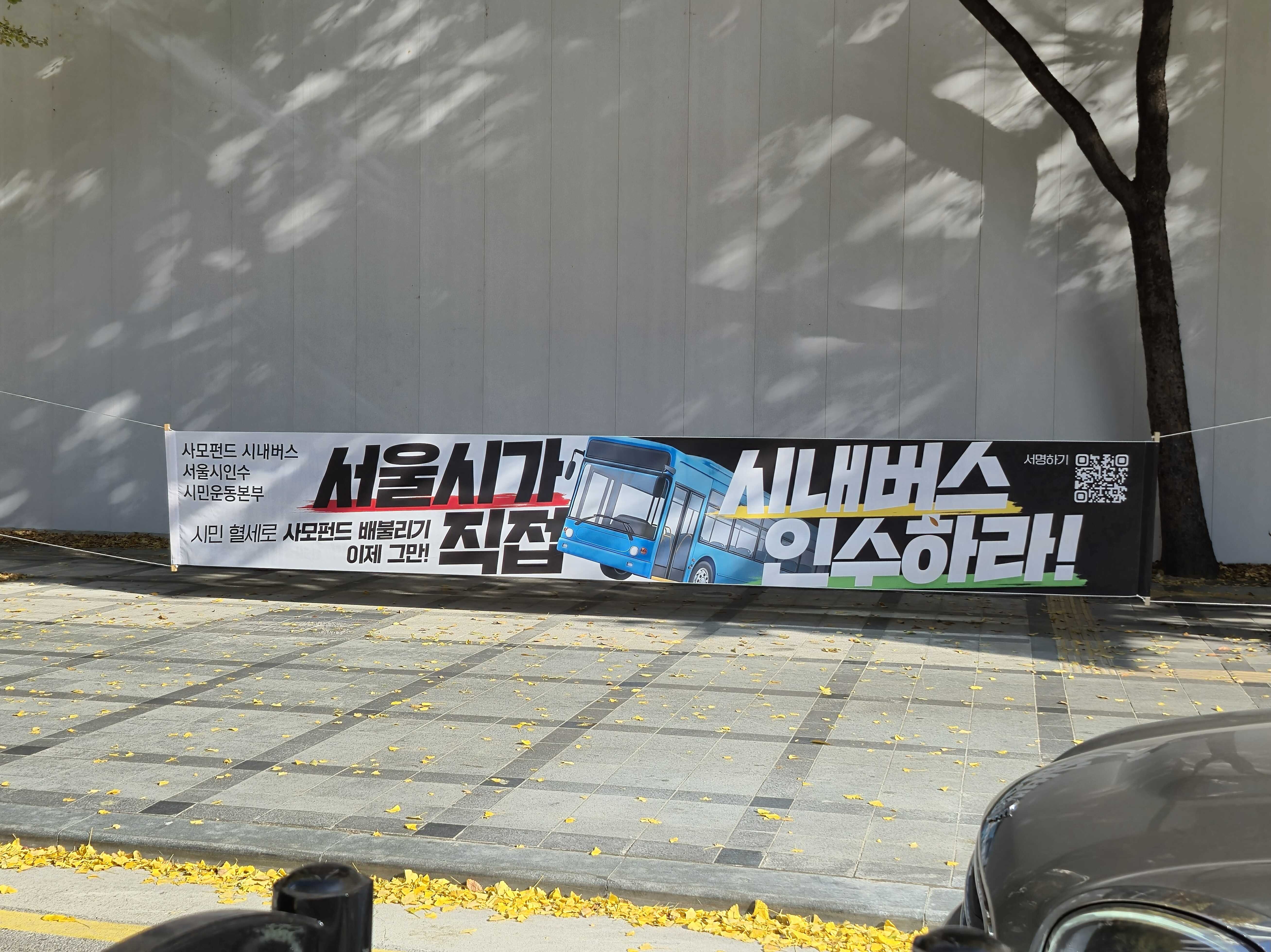 11월 15일 토요일, 서울시청 동편에서 진행된 사모펀드 시내버스를 공공버스로 만드는 공공버스킹!에 함께 했습니다. 서울 시내버스의 공공성을 지키기 위해 발족한 '사모펀드 시내버스 서울시인수 시민운동본부'에서 함께 준비한 이번 공공버스킹은 서울 시민 분들께 사모펀드로 넘어간 버스업체들을 서울시가 직접 인수하여 운영하도록 하자는 제안을 알리기 위한 집회였습니다.