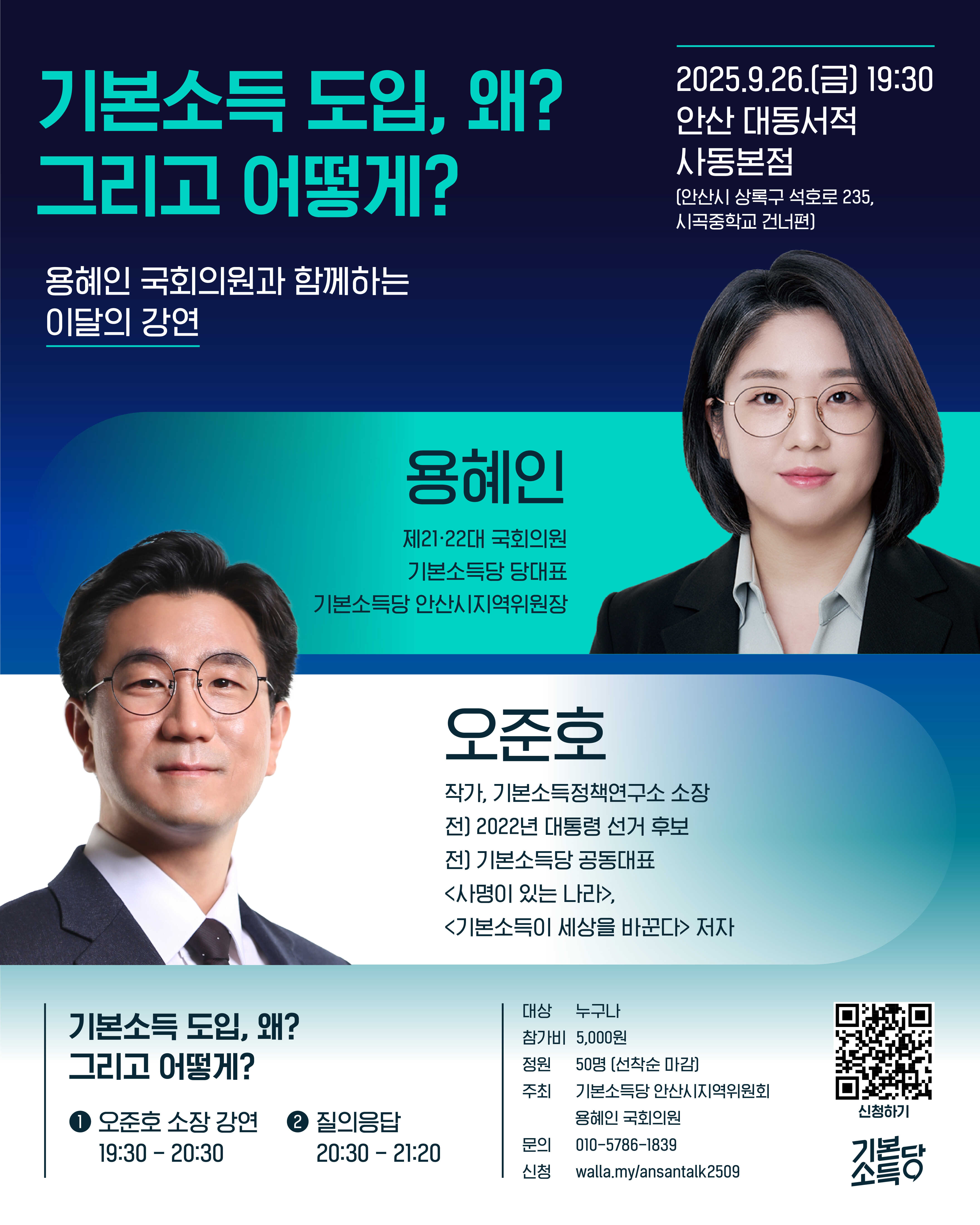 [안산위원회] [이달의강연] 9/26(금) 19:30 <기본소득 도입, 왜? 그리고 어떻게…