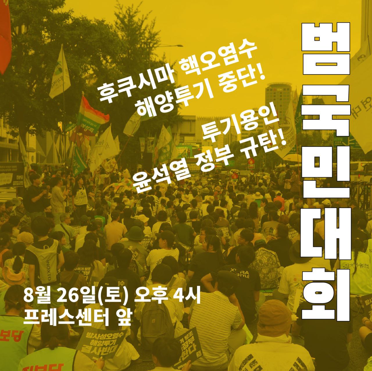 8/26(토) 16시 한국프레스센터 앞, 후쿠시마 핵오염수 투기용인 윤석열정부 규탄 범국민…