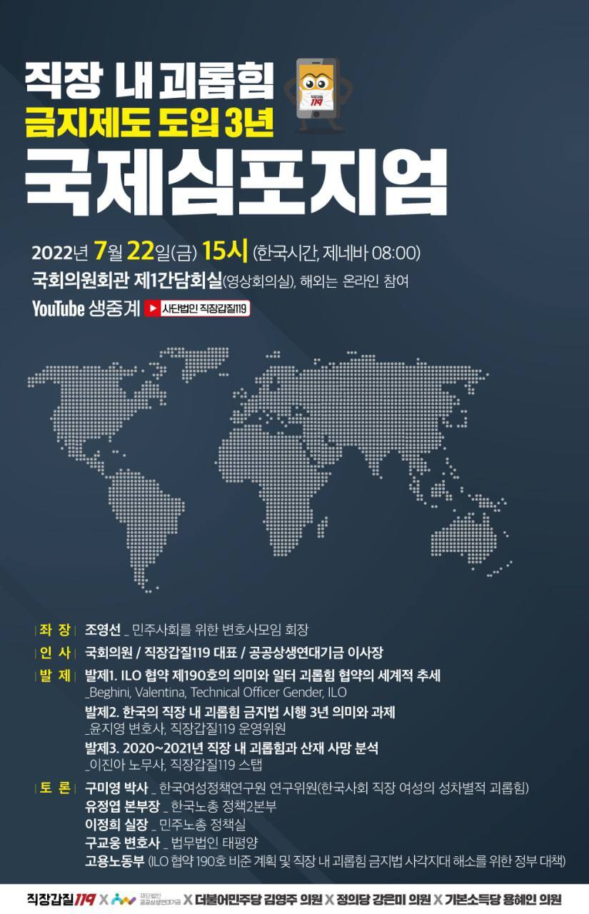 📍직장 내 괴롭힘 금지제도 도입3년 국제 심포지엄