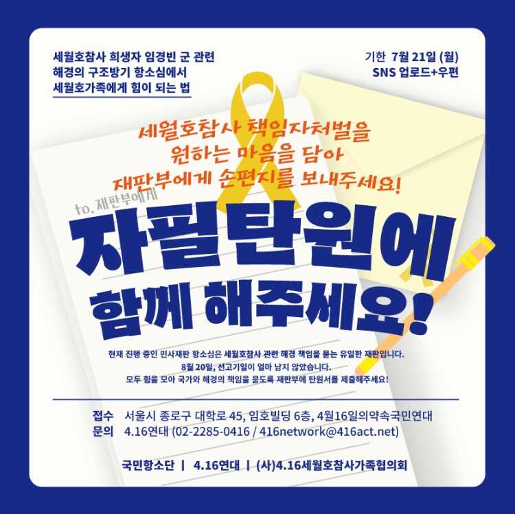 세월호참사 구조방기 국민항소단 탄원서 제출 함께 해요!