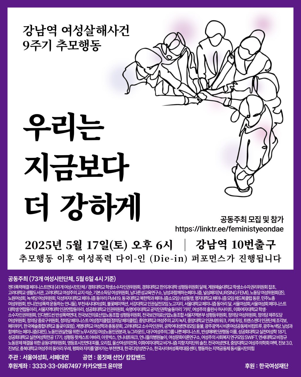 강남역 여성살해사건 9주기 추모행동, 공동주최로 함께합니다