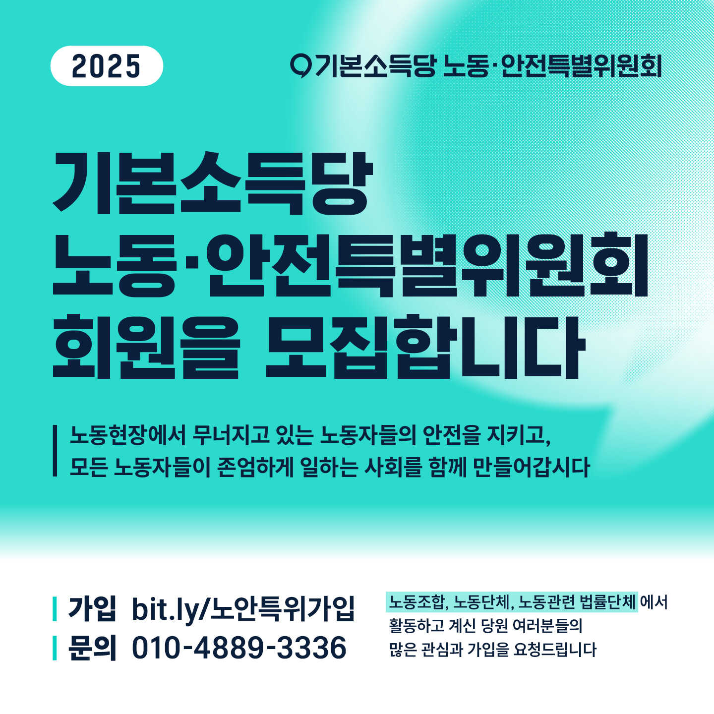 기본소득당 노동·안전특별위원회 회원 모집
