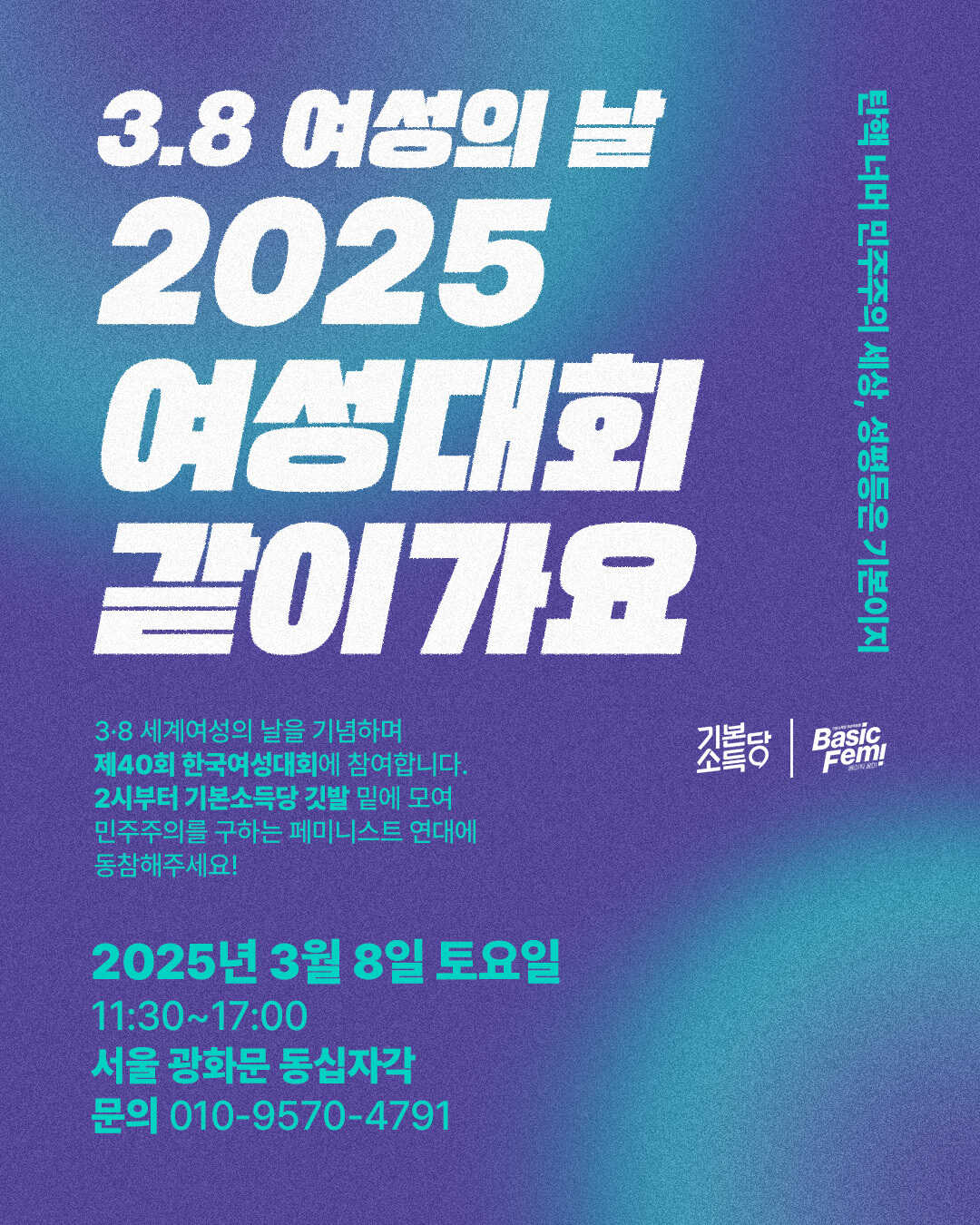 3・8 세계여성의 날 기념 제40회 한국여성대회 기본소득당 여성위원회와 같이 가요~