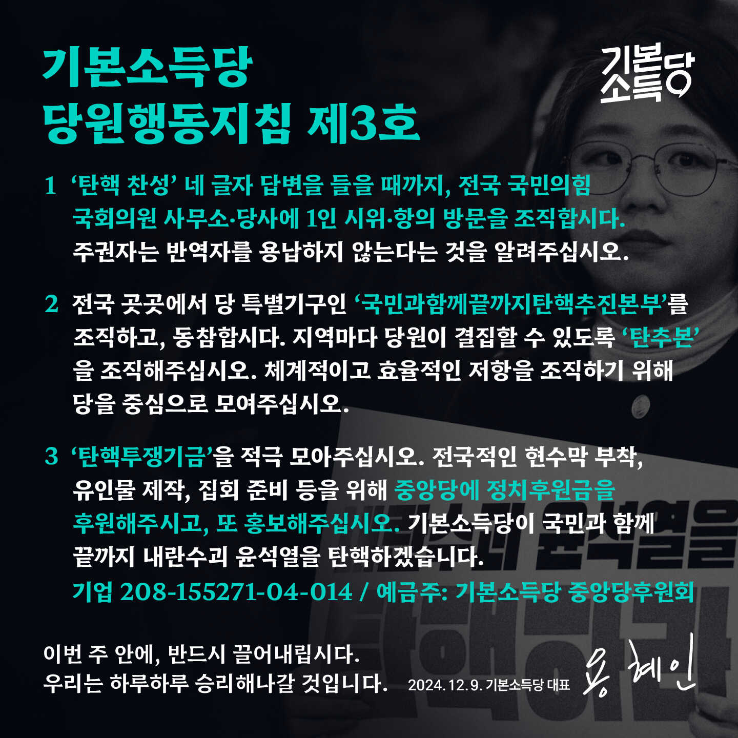 기본소득당 당원행동지침 제3호