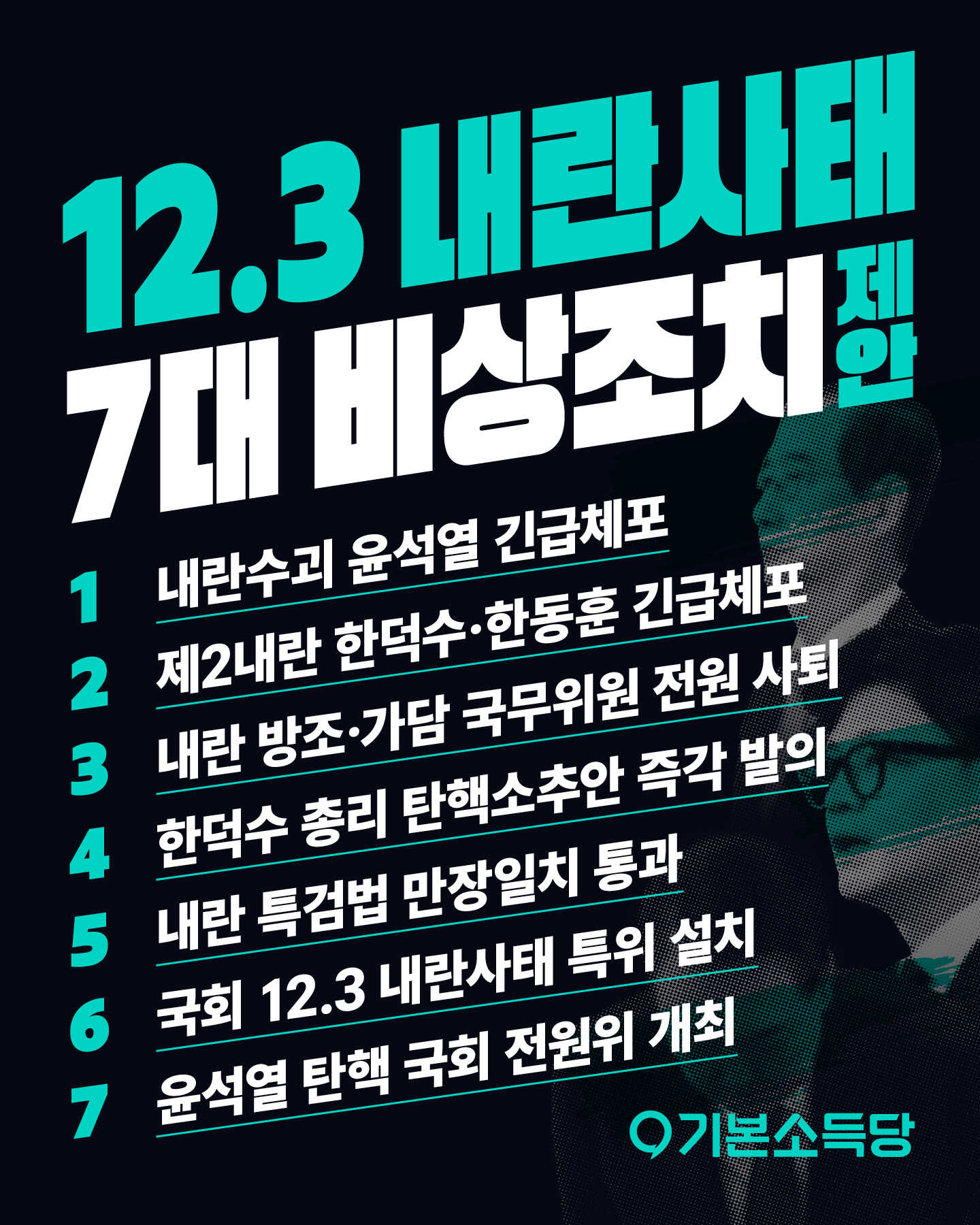12.3 내란사태 7대 비상조치 제안 _ 241209 기본소득당 최고위원회