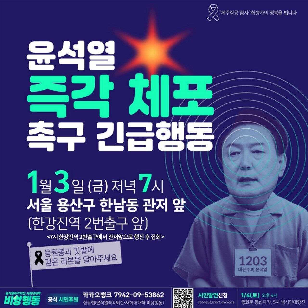 오늘 저녁 대통령실 관저 앞 집회에 참석해주세요