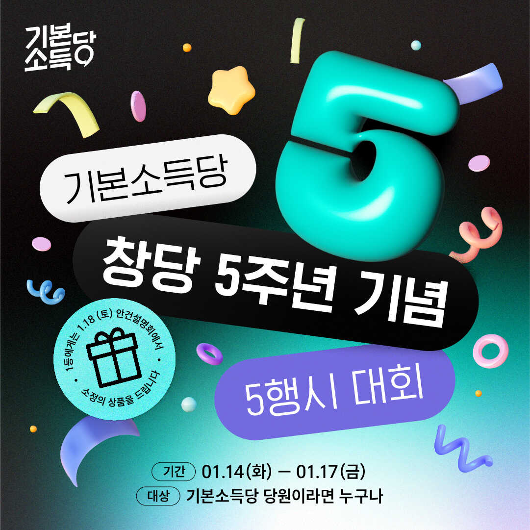 기본소득당 창당 5주년 기념 5행시 대회🎁