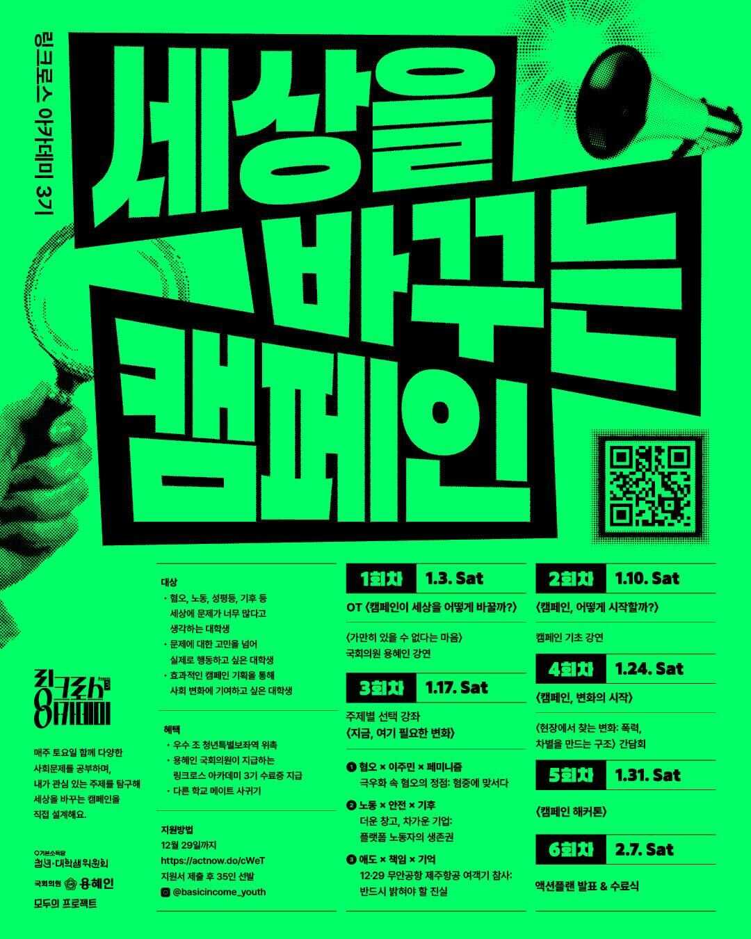[청년·대학생위원회] 링크로스 아카데미 3기 : 세상을 바꾸는 캠페인 참가자 모집 시작! …