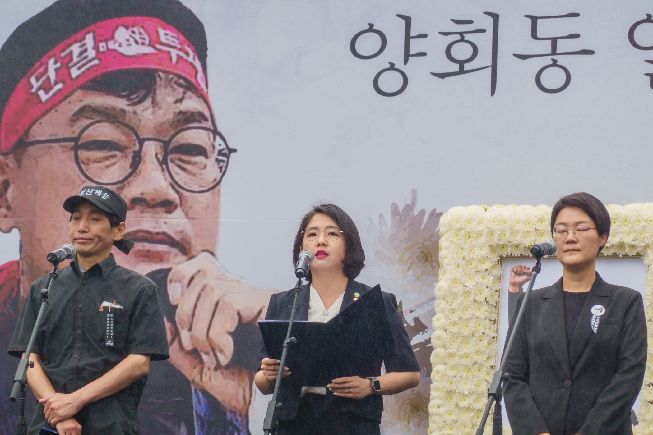 그렇기에 저는 우리가 기어코 포기하지 않는다면 마침내 이기고 말 것임을 자신합니다. 고 양회동 열사, 그리고 수많은 노동열사가 남긴 뜻을 더 단단한 단결로, 더 넓은 연대로 받아안으며 그들이 삶으로 남긴 유지를 받들어 나간다면 말입니다.