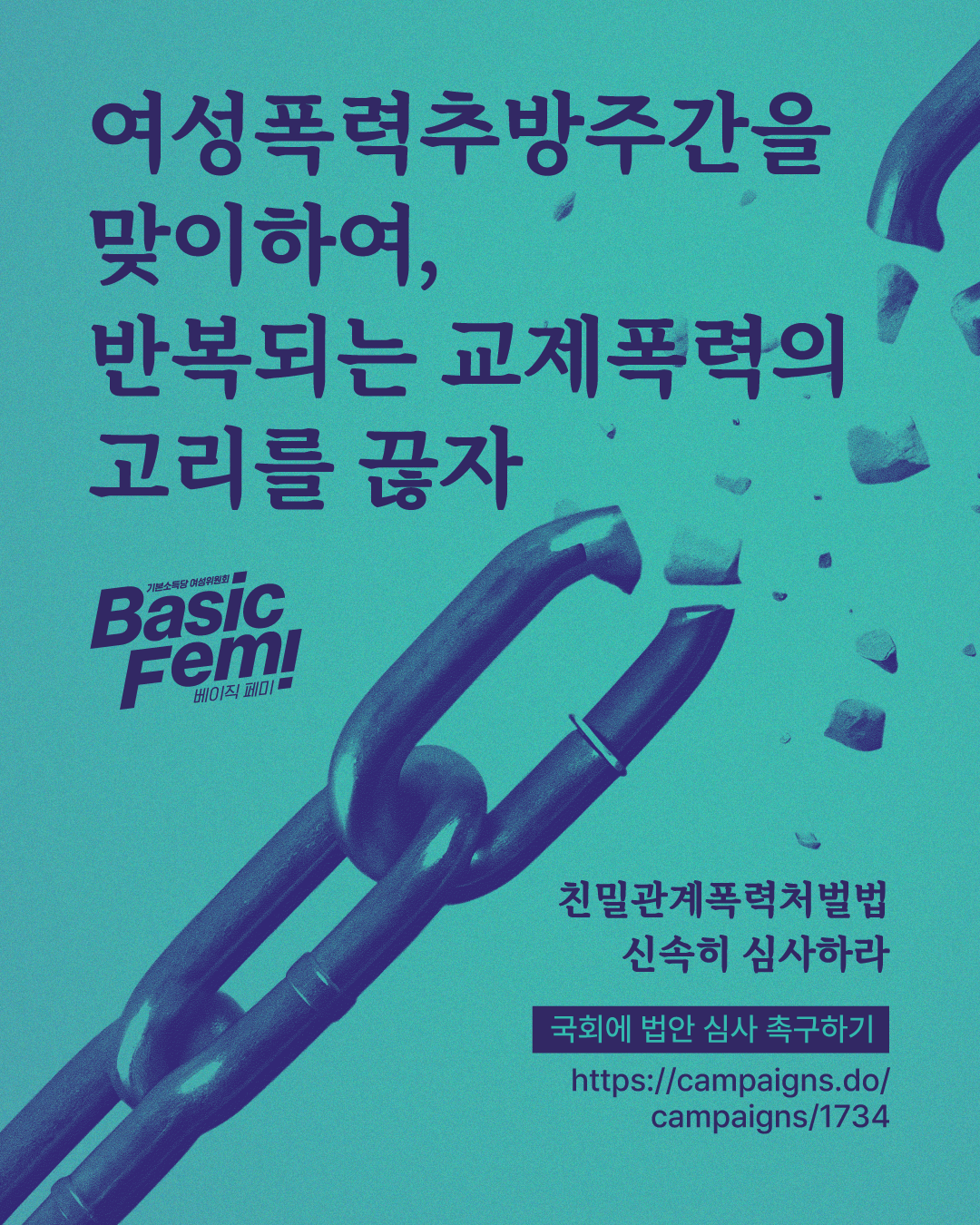 2025년 여성폭력추방주간을 맞이하여, 국회는 반복되는 교제폭력의 고리를 끊기 위한 친밀관계폭력처벌법을 신속히 심사하라.