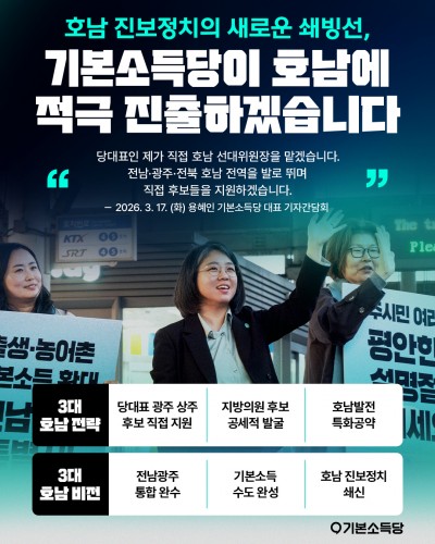 호남 진보정치의 새로운 쇄빙선, 기본소득당이 호남에 적극 진출하겠습니다.