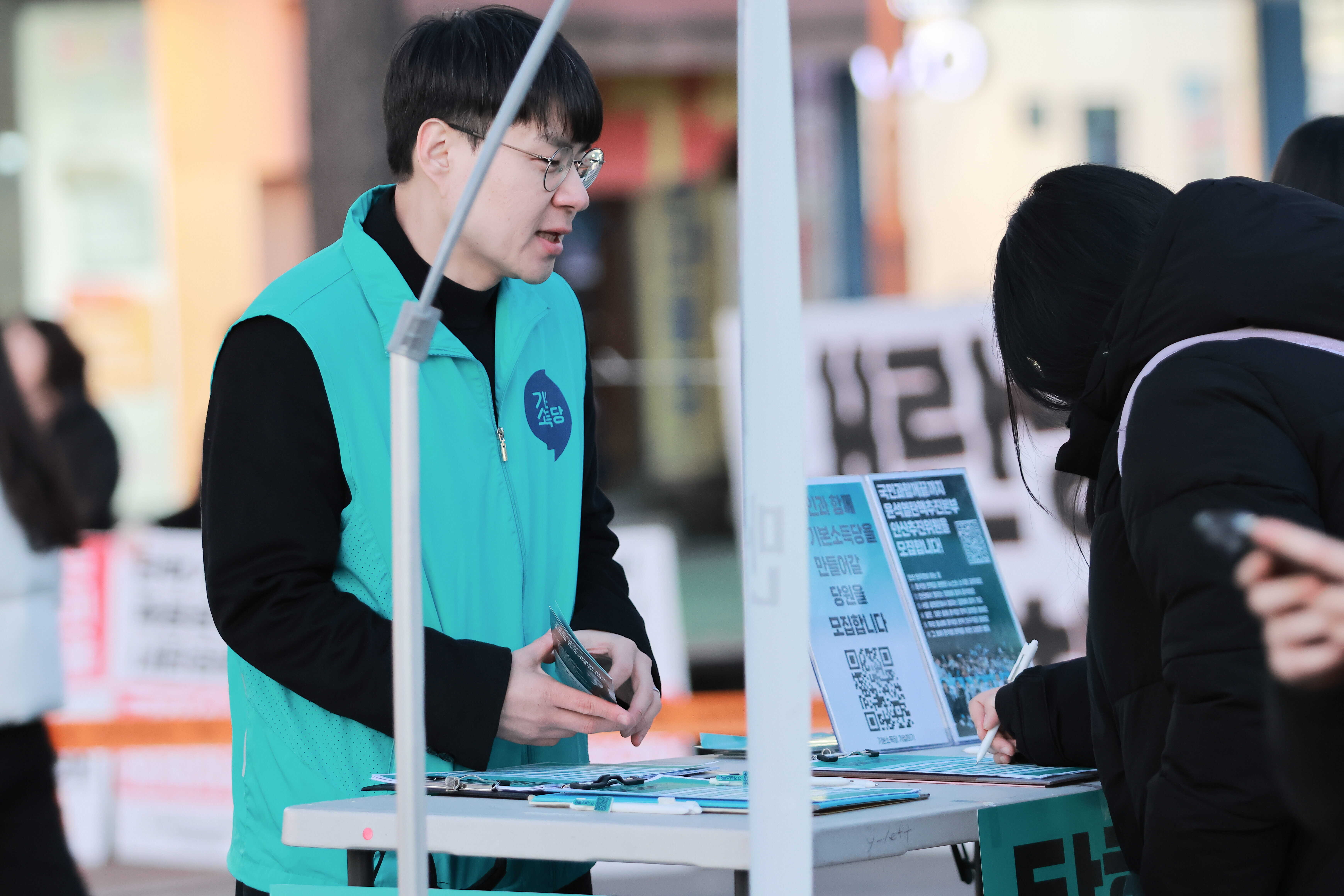 집회가 시작되기 전 기본소득당 안산위는 탄핵 서명을 받는 캠페인을 진행했습니다.