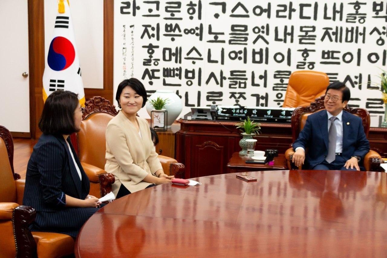 6월 12일 오전 10시, 국회의장실에서 기본소득당 신임대표단이 박병석 국회의장을 예방해 환담을 나눴습니다.
