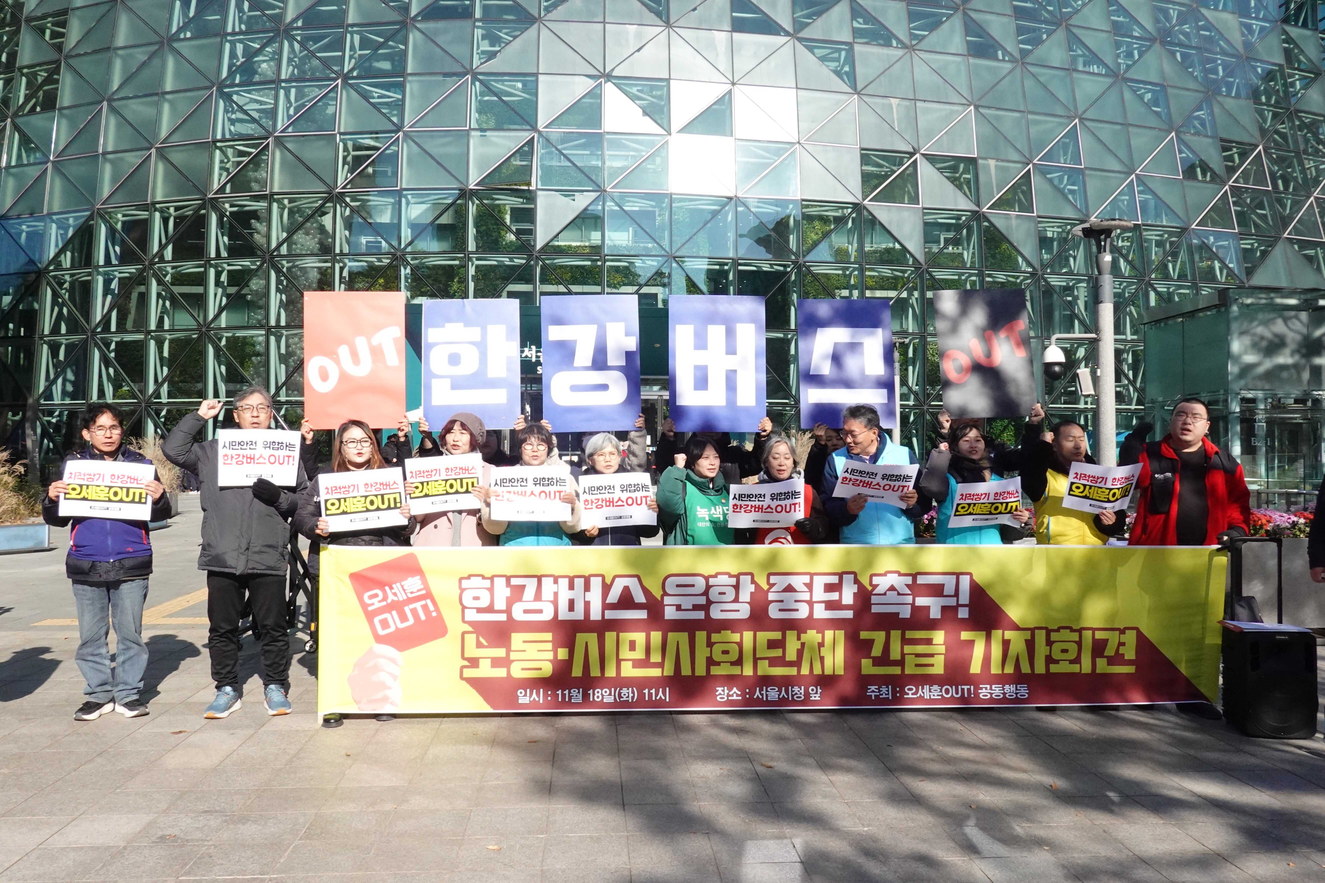 11월 18일 오전, 서울시청 앞 <시민안전 위협하는 ‘공포의 한강버스’ 운항, 즉각 중단하라!> 기자회견에도 오세훈OUT 공동행동과 함께 다녀왔습니다.