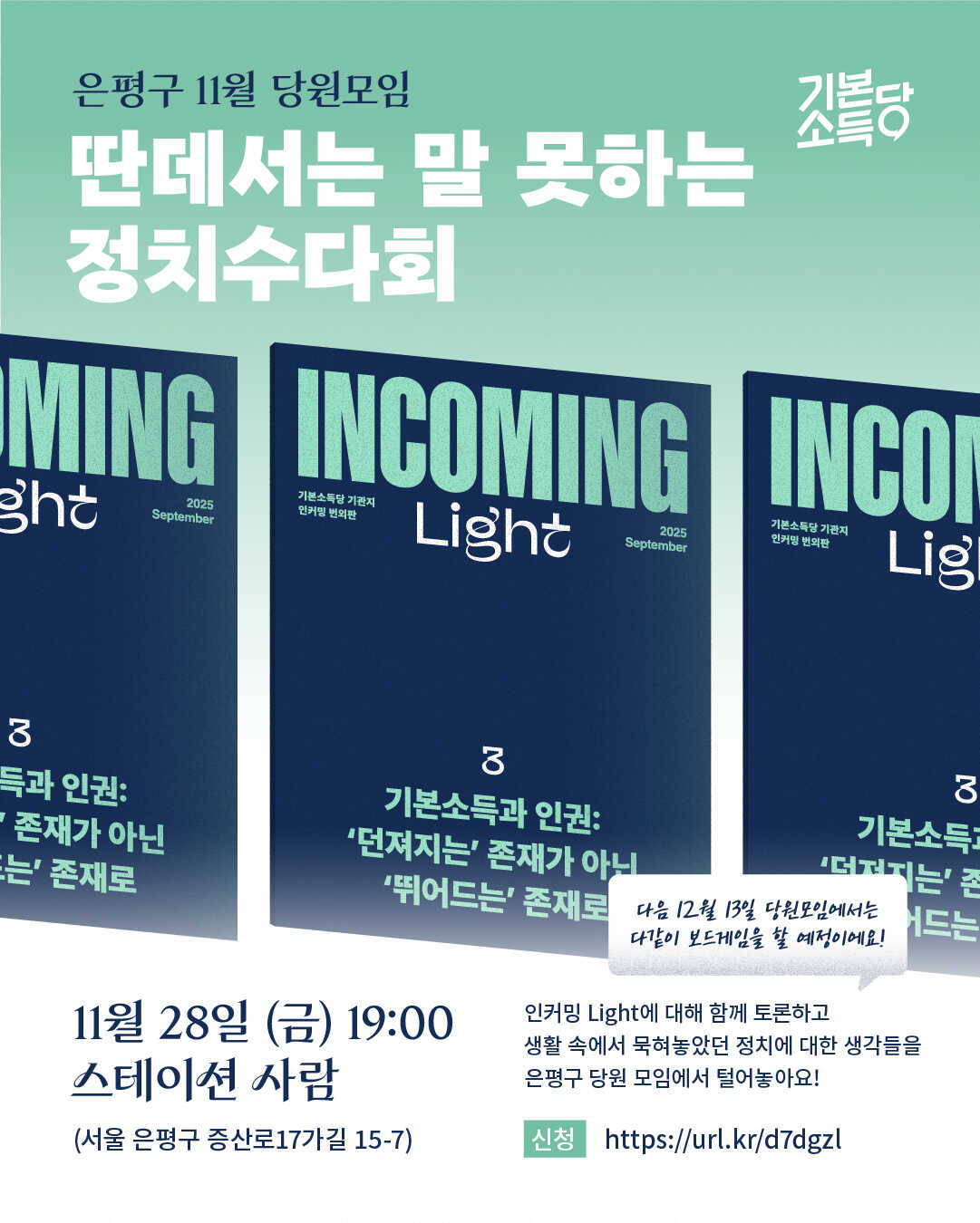 [은평구위원회] 11월 당원모임 <딴 데서는 말 못하는 정치수다회>