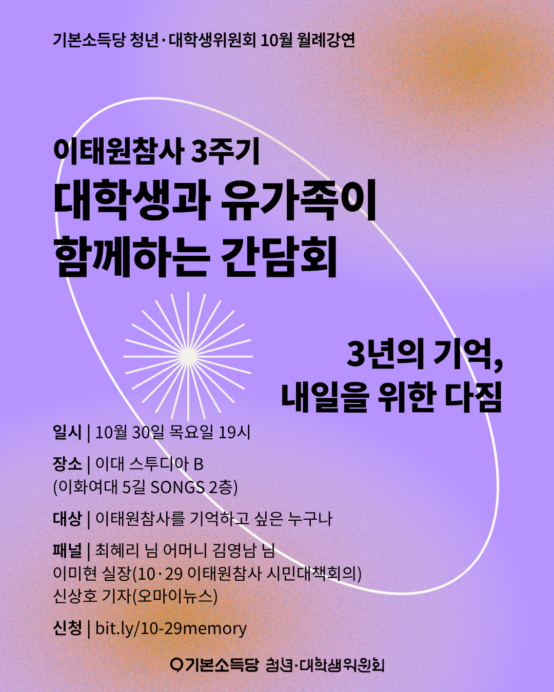 [청년·대학생위원회] 🌟10·29 이태원참사 3주기 대학생과 유가족이 함께하는 간담회 <3…