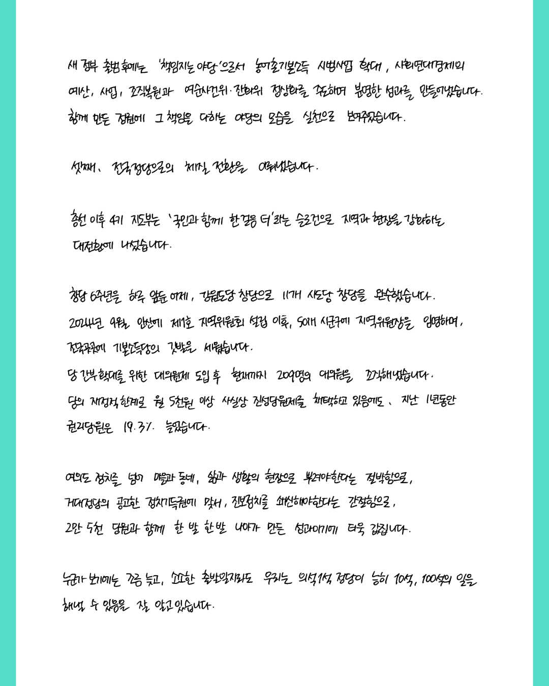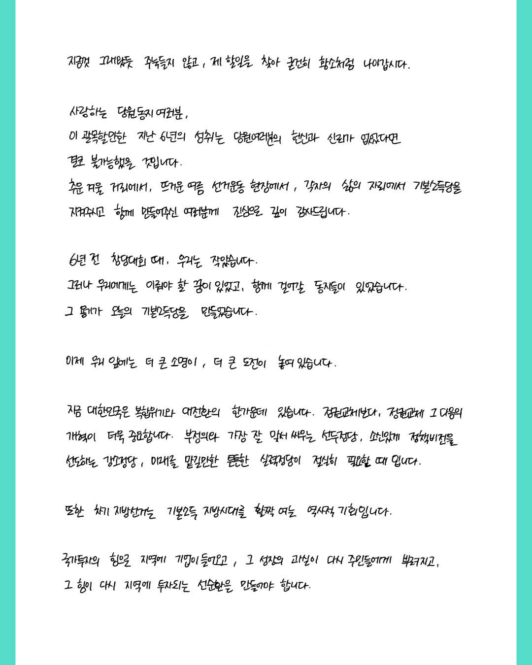 당원 여러분과 함께라면 반드시 해낼 수 있습니다.